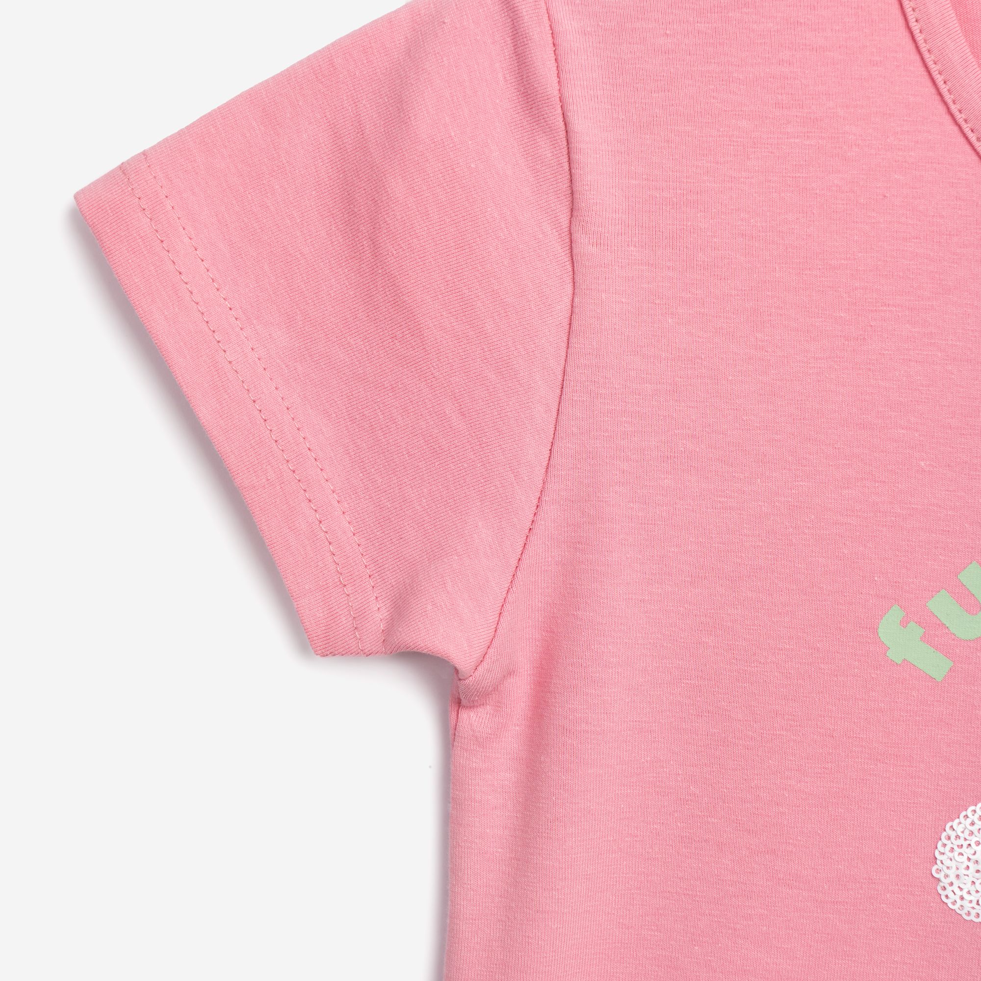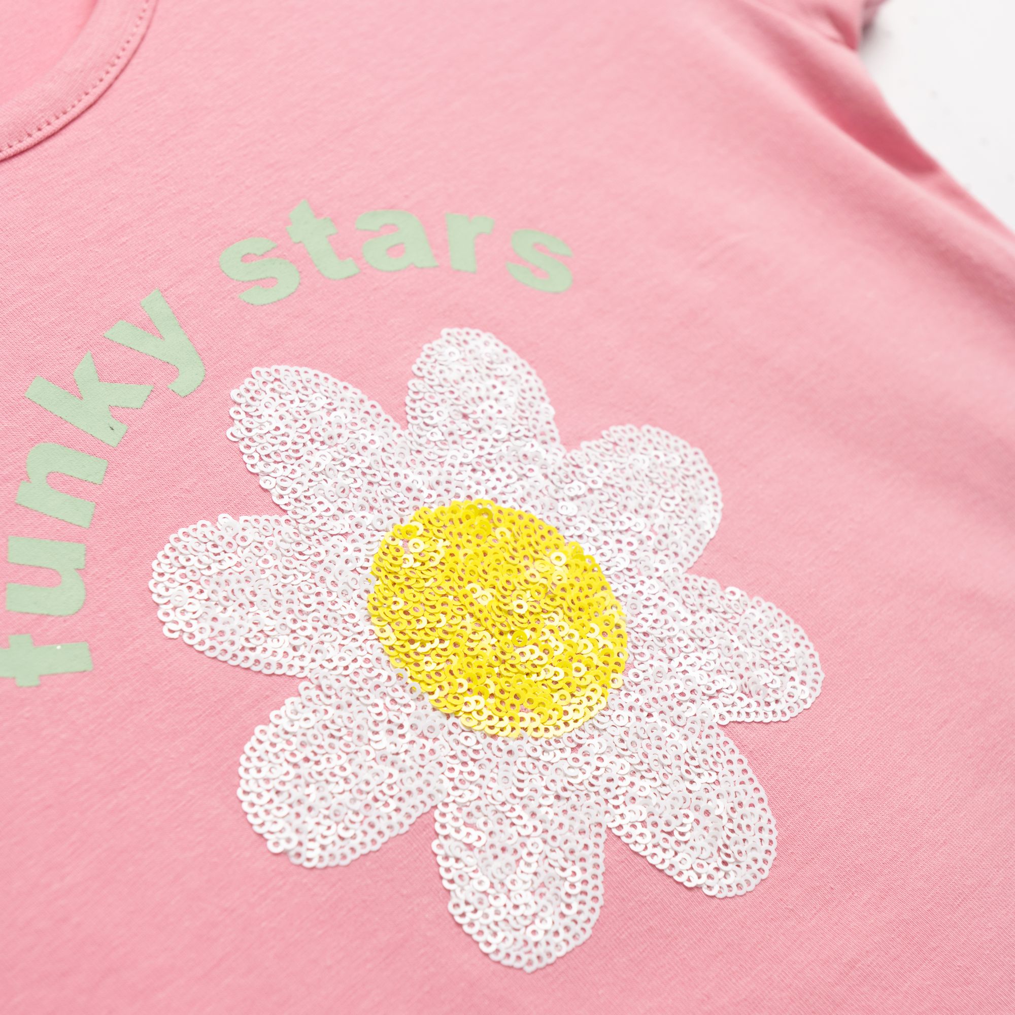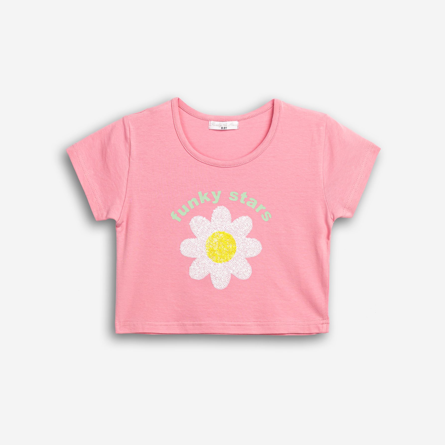 Μπλούζα κοντομάνικη κάλτσα λύκρα με τύπωμα (χαμομήλι) σε χρώμα ρόζ για κορίτσι 6-16 ετών
