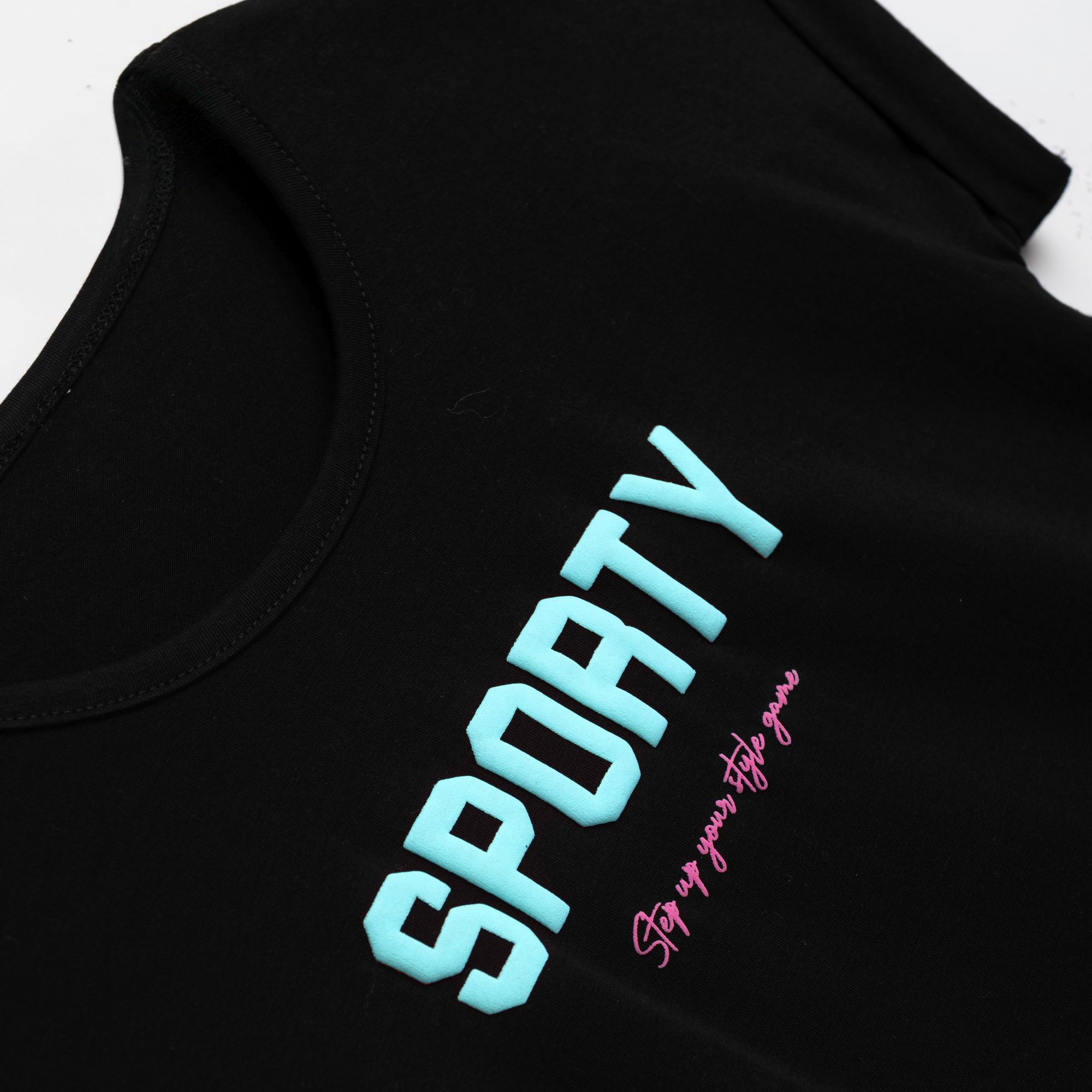 Μπλούζα κάλτσα λύκρα με τύπωμα (sporty) σε χρώμα μαύρο για κορίτσι 6-16 ετών