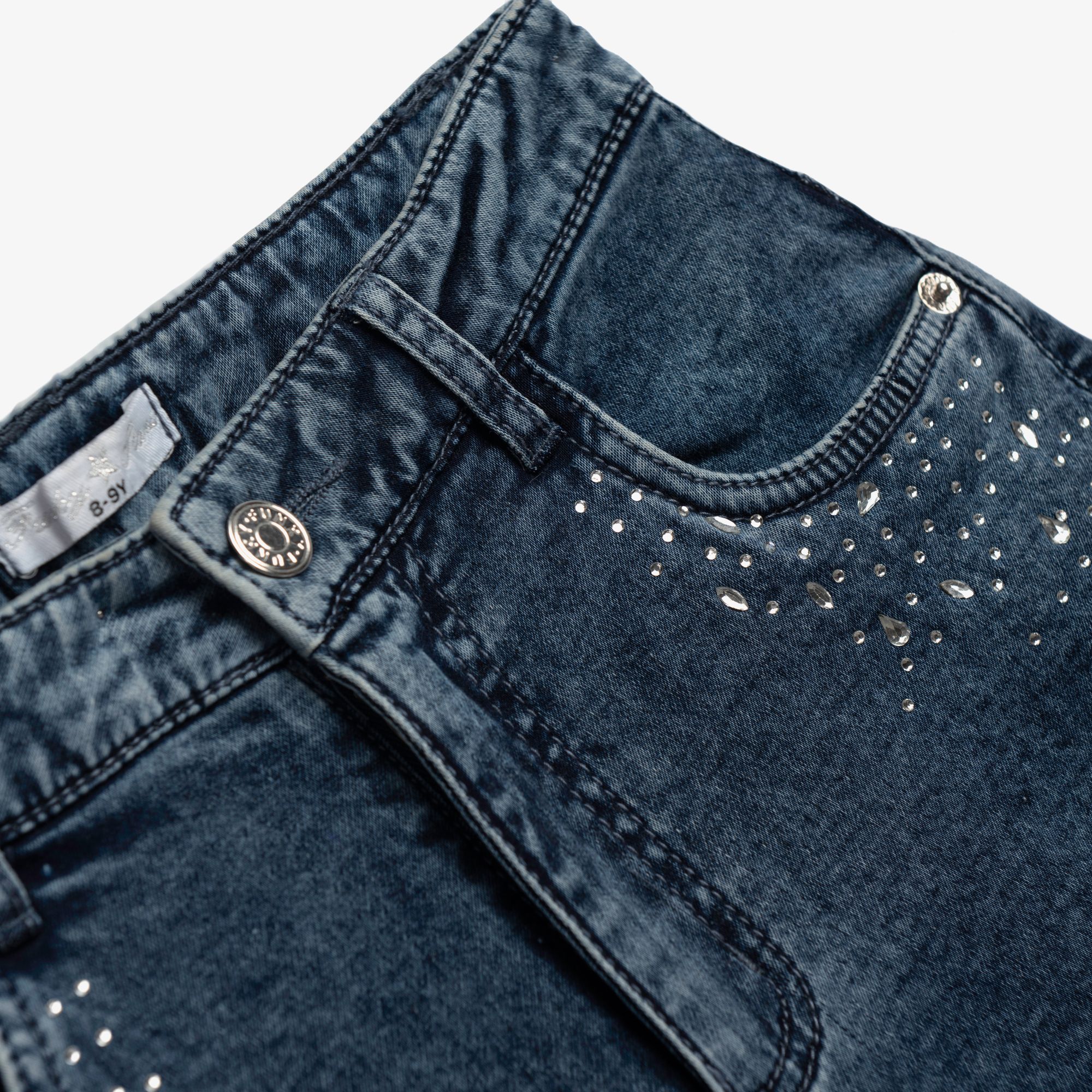 Παντελόνα τζίν λύκρα με στρας σε χρώμα τύπος για κορίτσι 6-16 ετών