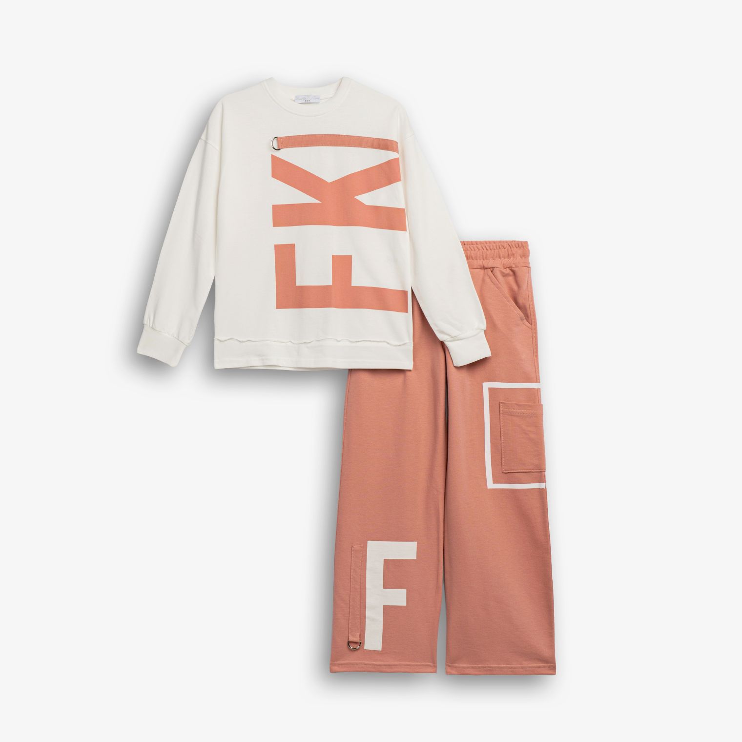 Φόρμα φούτερ με τύπωμα (FK) και παντελόνι φόρμας με τύπωμα σε χρώμα εκρού/άγριο τριαντάφυλλο για κορίτσι 6-16 ετών