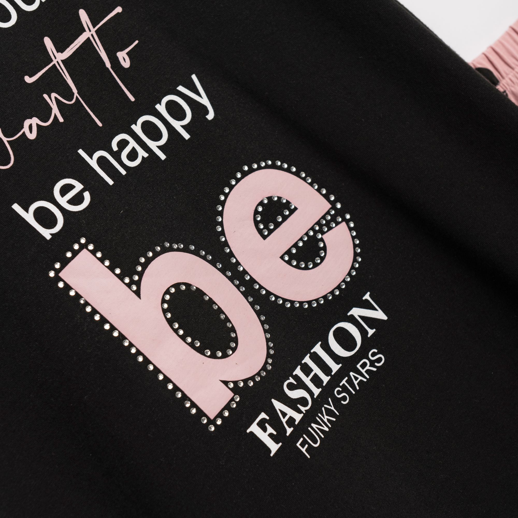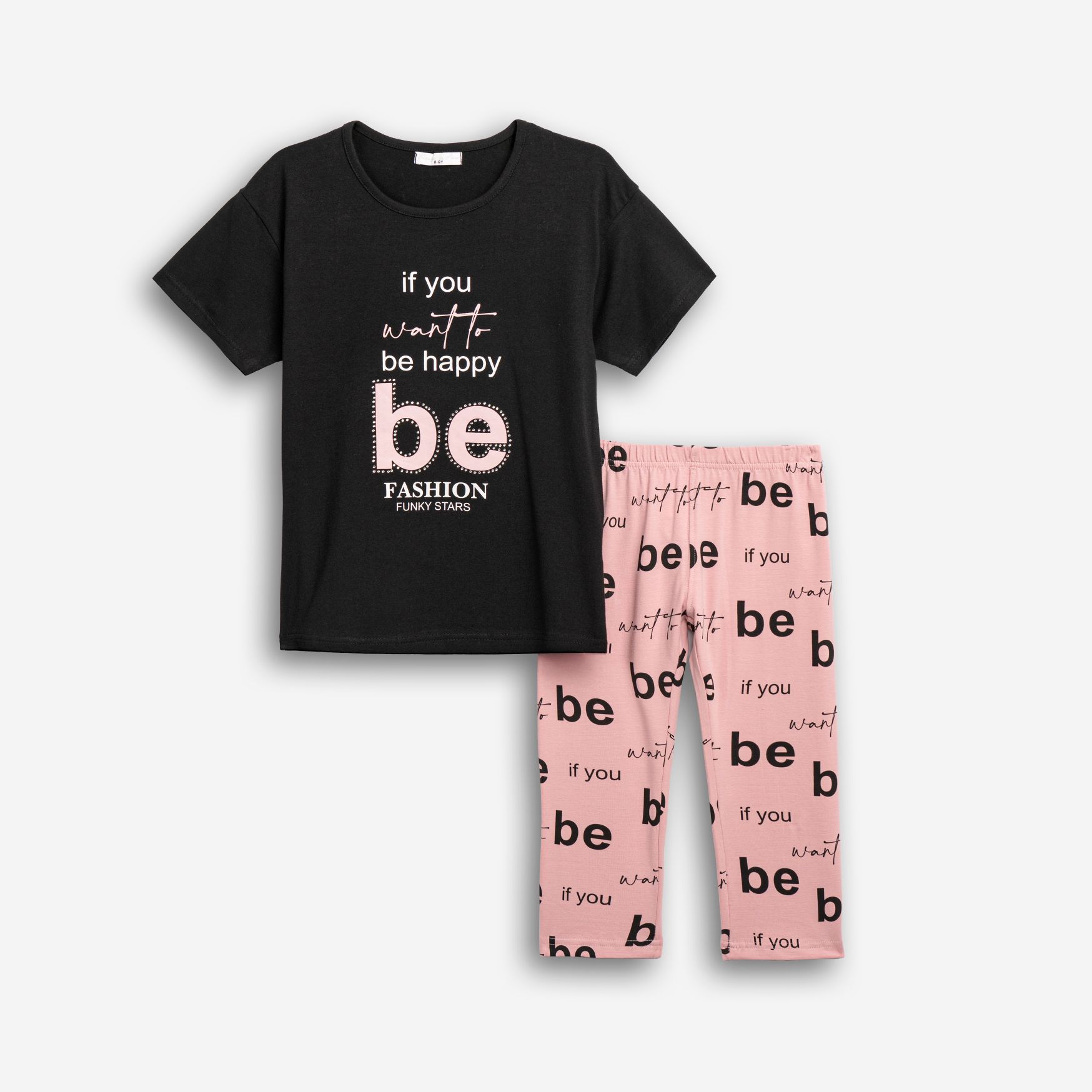 Μπλουζοφόρεμα με τύπωμα (γράμματα) και κολάν με τύπωμα allover κάλτσα κάπρι λύκρα σε χρώμα μαύρο/άγριο τριαντάφυλλο για κορίτσι 6-16 ετών