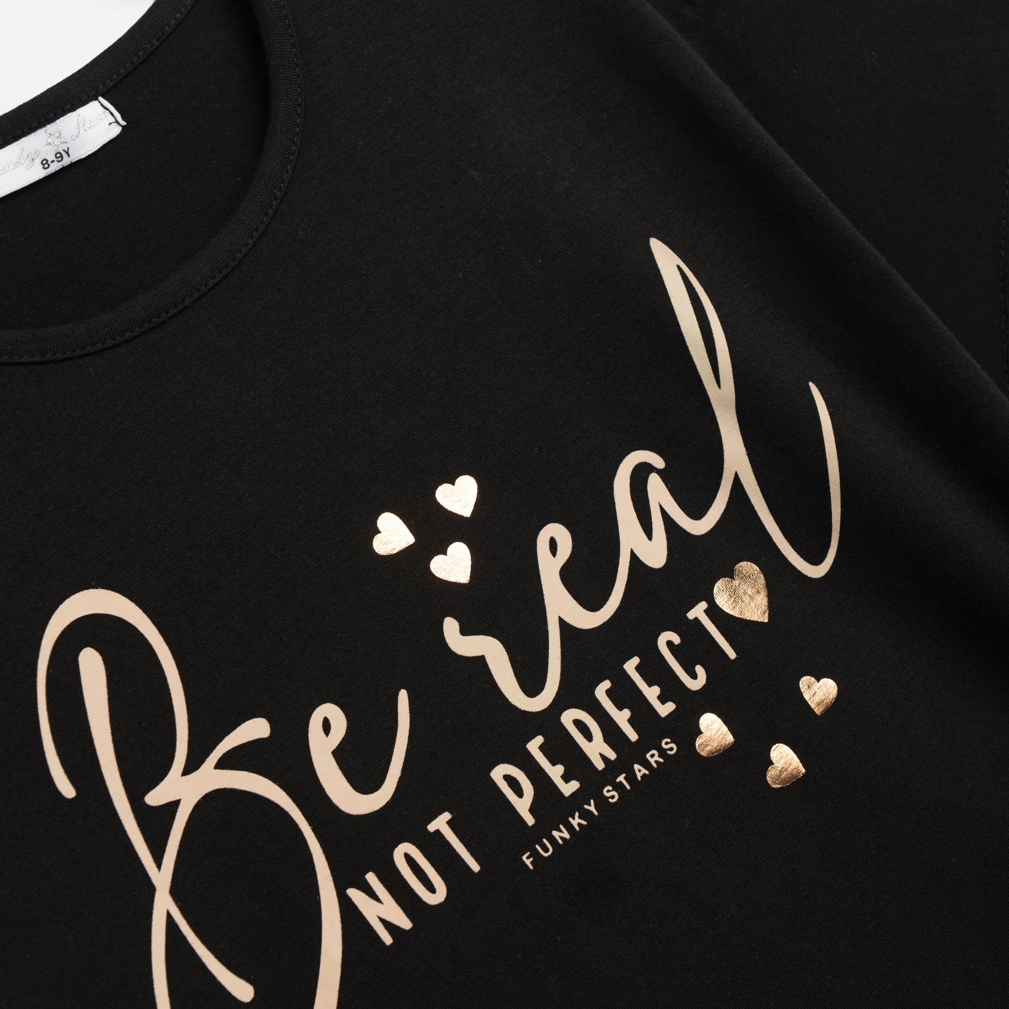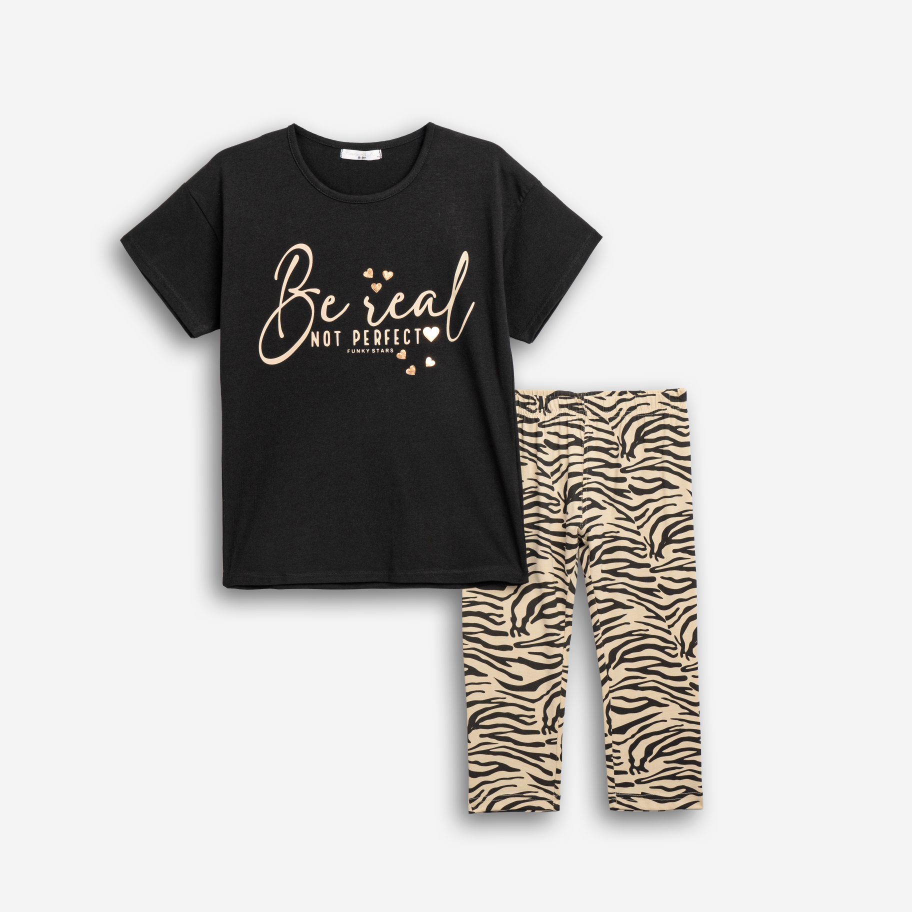 Μπλουζοφόρεμα με τύπωμα (be real) και κολάν κάλτσα κάπρι λύκρα με τύπωμα (zebra) allover σε μαύρο/ανοιχτό μπέζ για κορίτσι 6-16 ετών