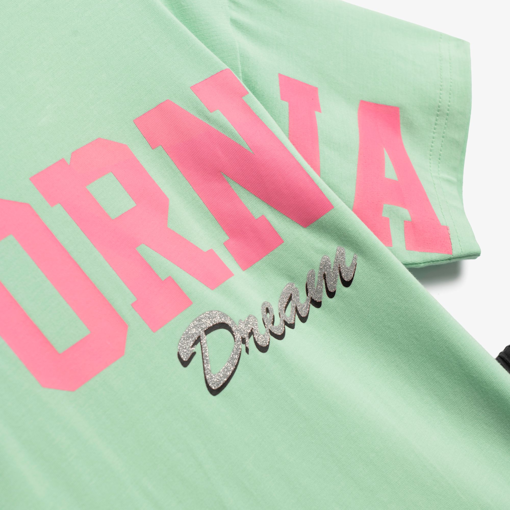 Μπλουζοφόρεμα με τύπωμα (california draming) και κολάν κάλτσα κάπρι λύκρα με τύπωμα σε χρώμα μέντα/ανθρακί-μέντα για κορίτσι 6-16 ετών