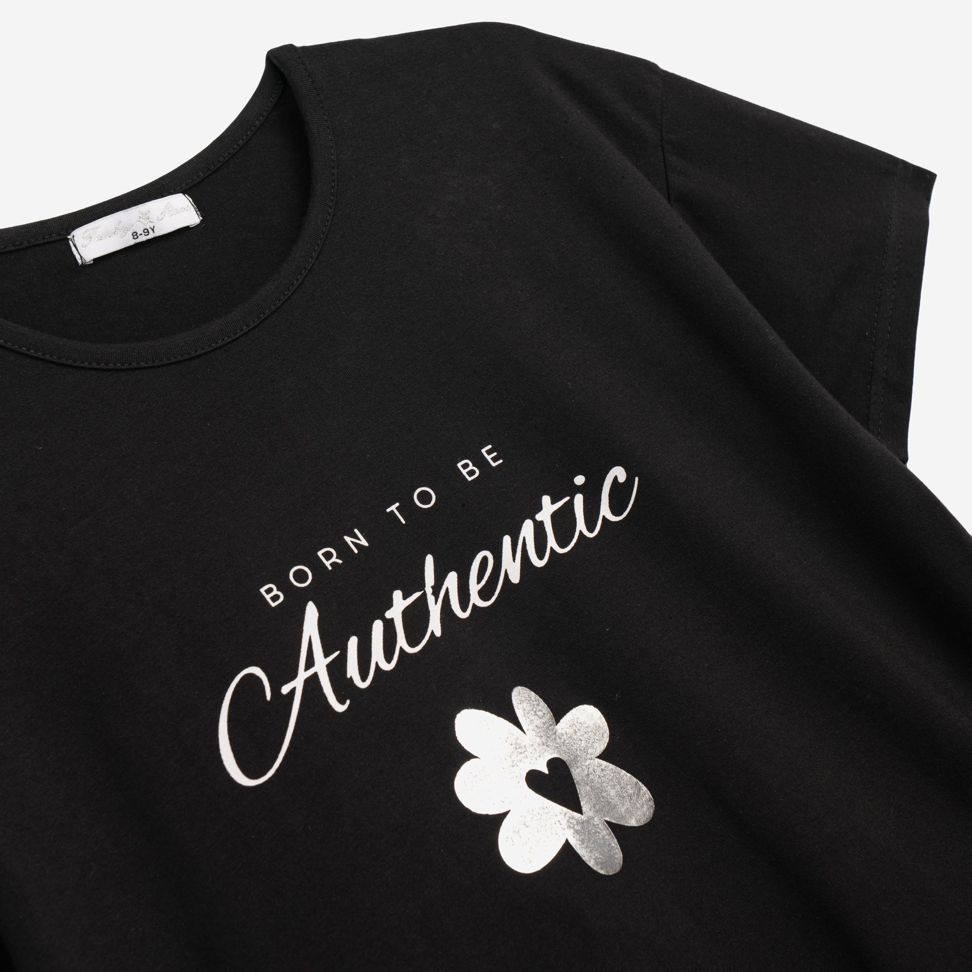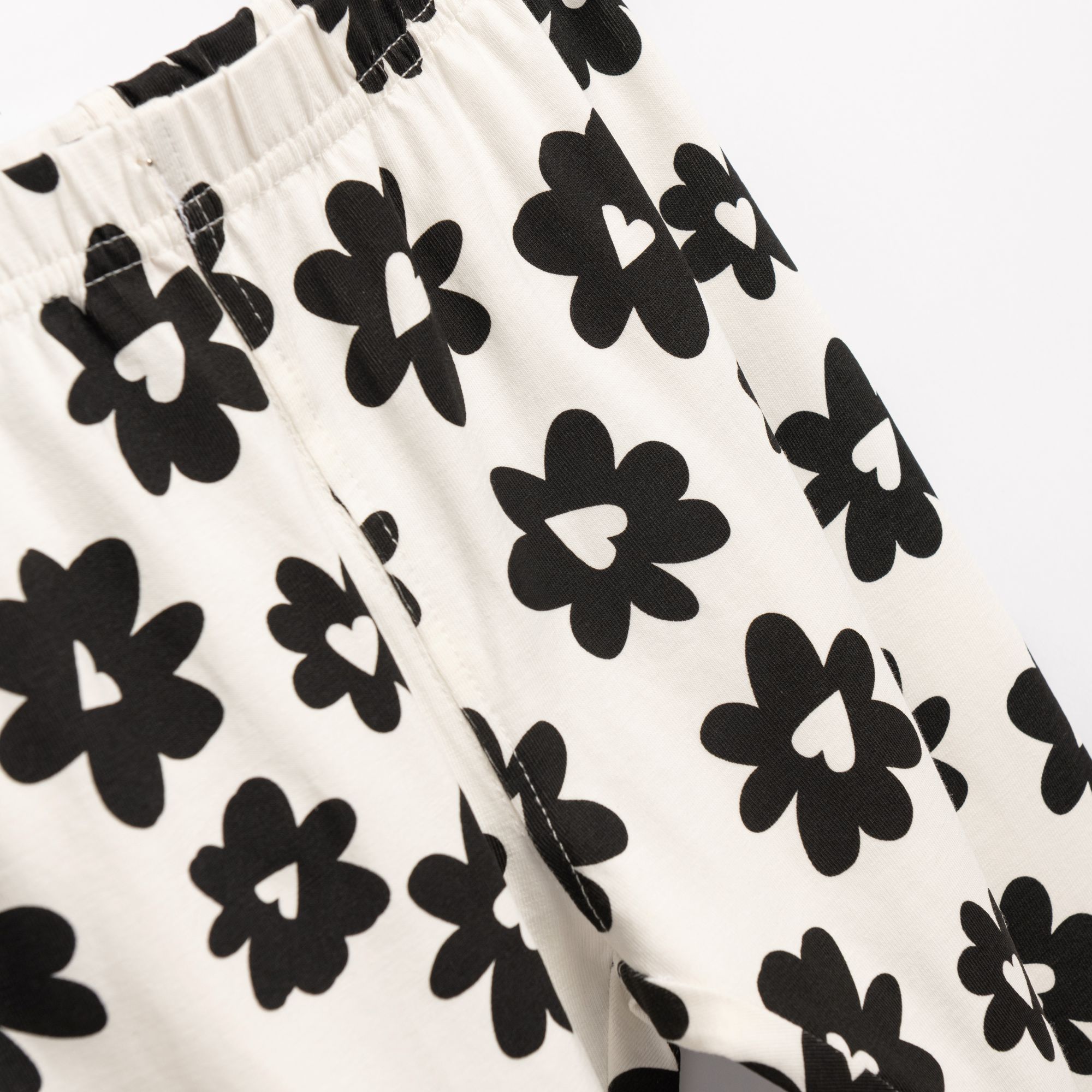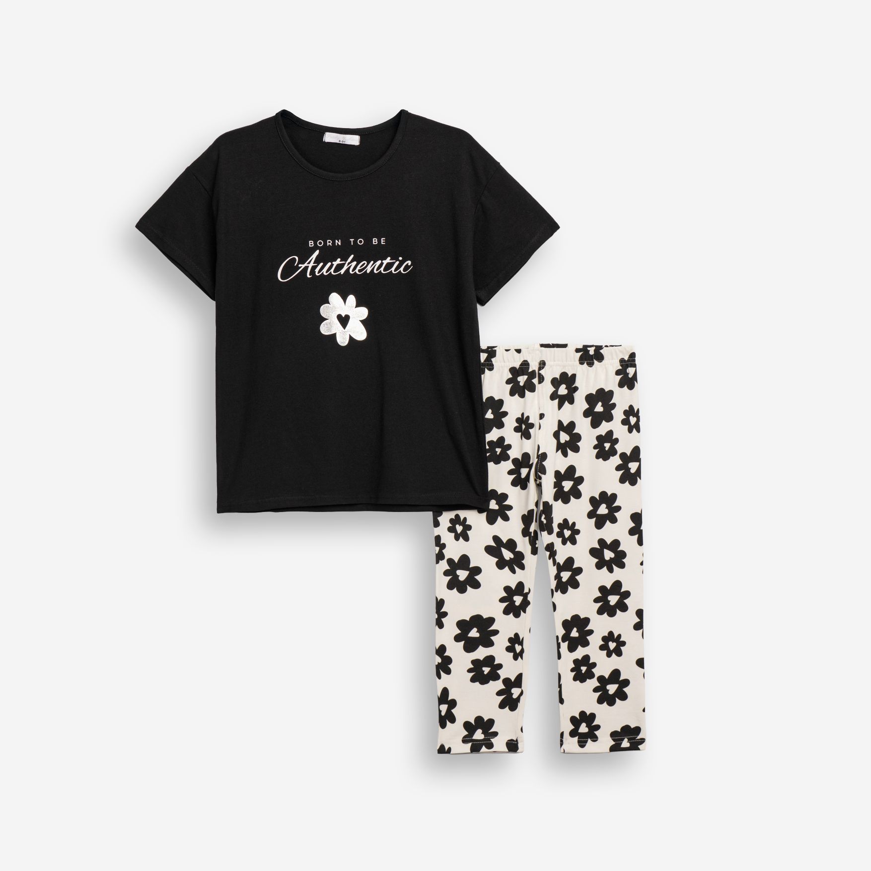 Μπλουζοφόρεμα με τύπωμα (λουλούδι) και κολάν κάλτσα κάπρι λύκρα με τύπωμα allover σε χρώμα μαύρο/εκρού για κορίτσι 6-16 ετών