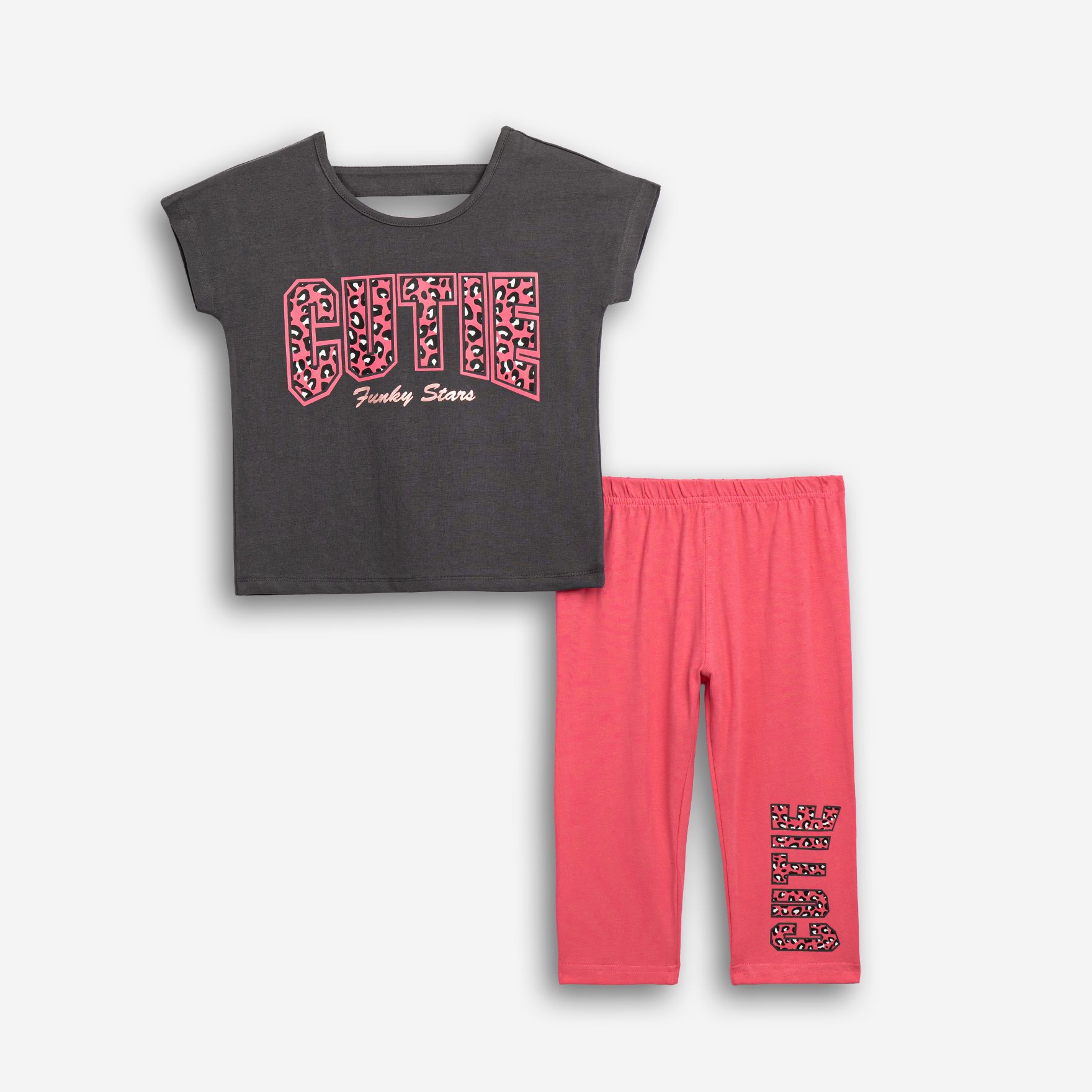 Σετ μπλούζα και κολάν κάτω από το γόνατο κάλτσα λύκρα σε χρώμα ανθρακί/φλαμίνγκο για κορίτσι 6-16 ετών