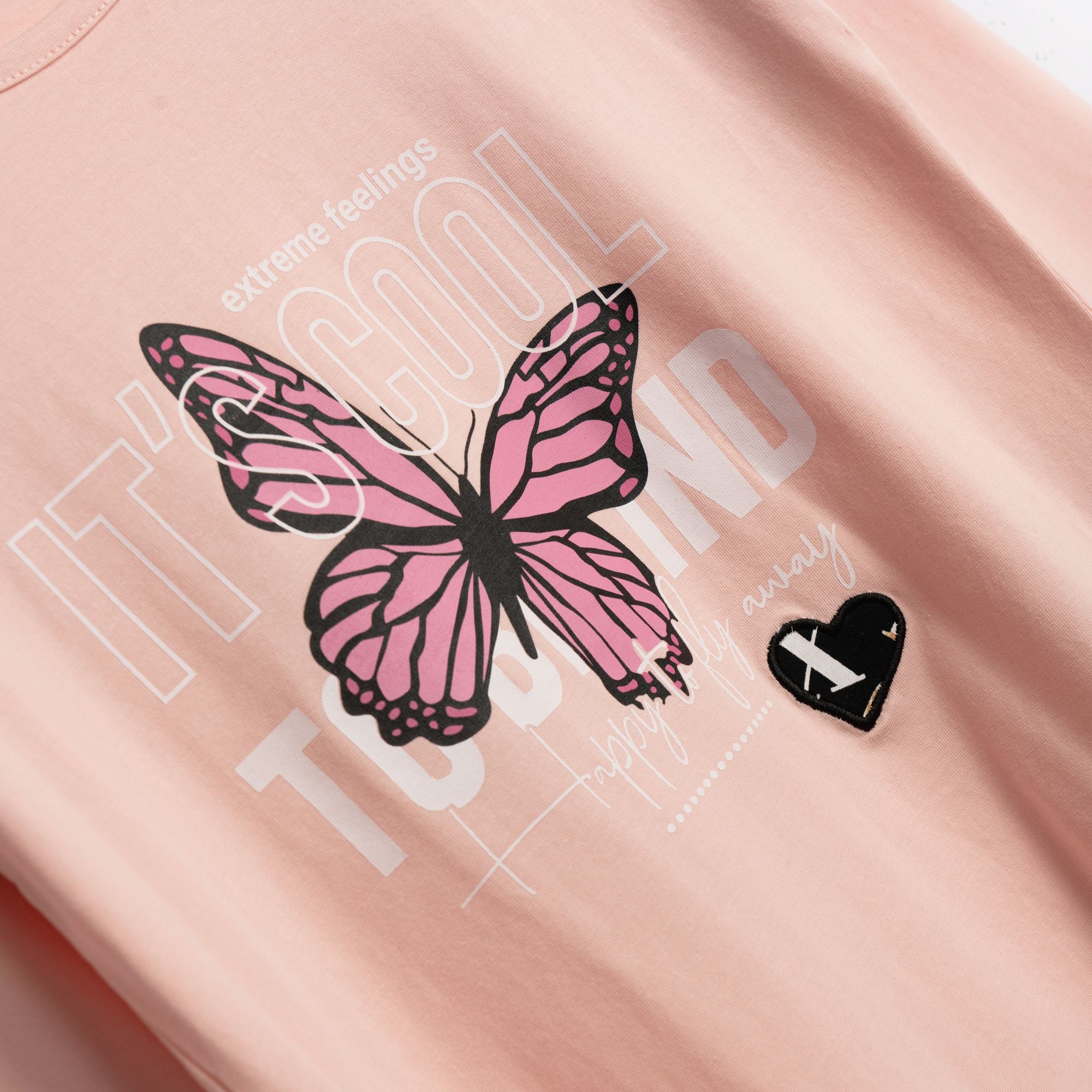 Μπλουζοφόρεμα μακρυμάνικο με τύπωμα (πεταλούδα) και κολάν μακρύ κάλτσα λύκρα με τύπωμα allover σε χρώμα ροζ πούδρας/μαύρο για κορίτσι 6-16 ετών