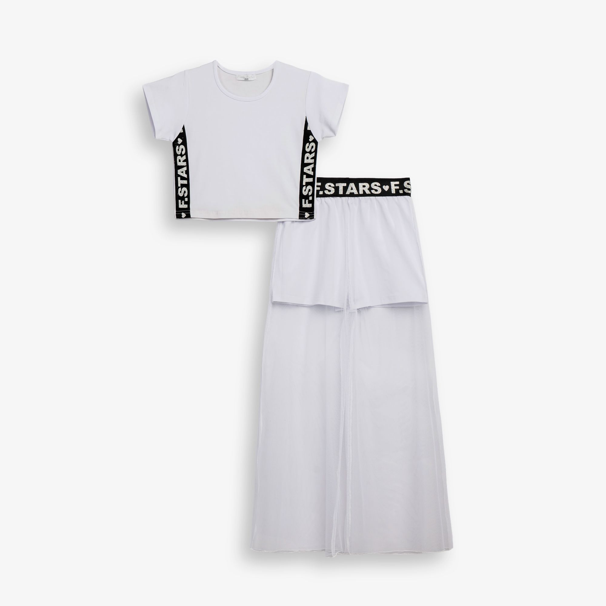 Σετ μπλούζα και παντελόνα κάλτσα λύκρα με τούλι σε χρώμα λευκό/λευκό για κορίτσι 6-16 ετών