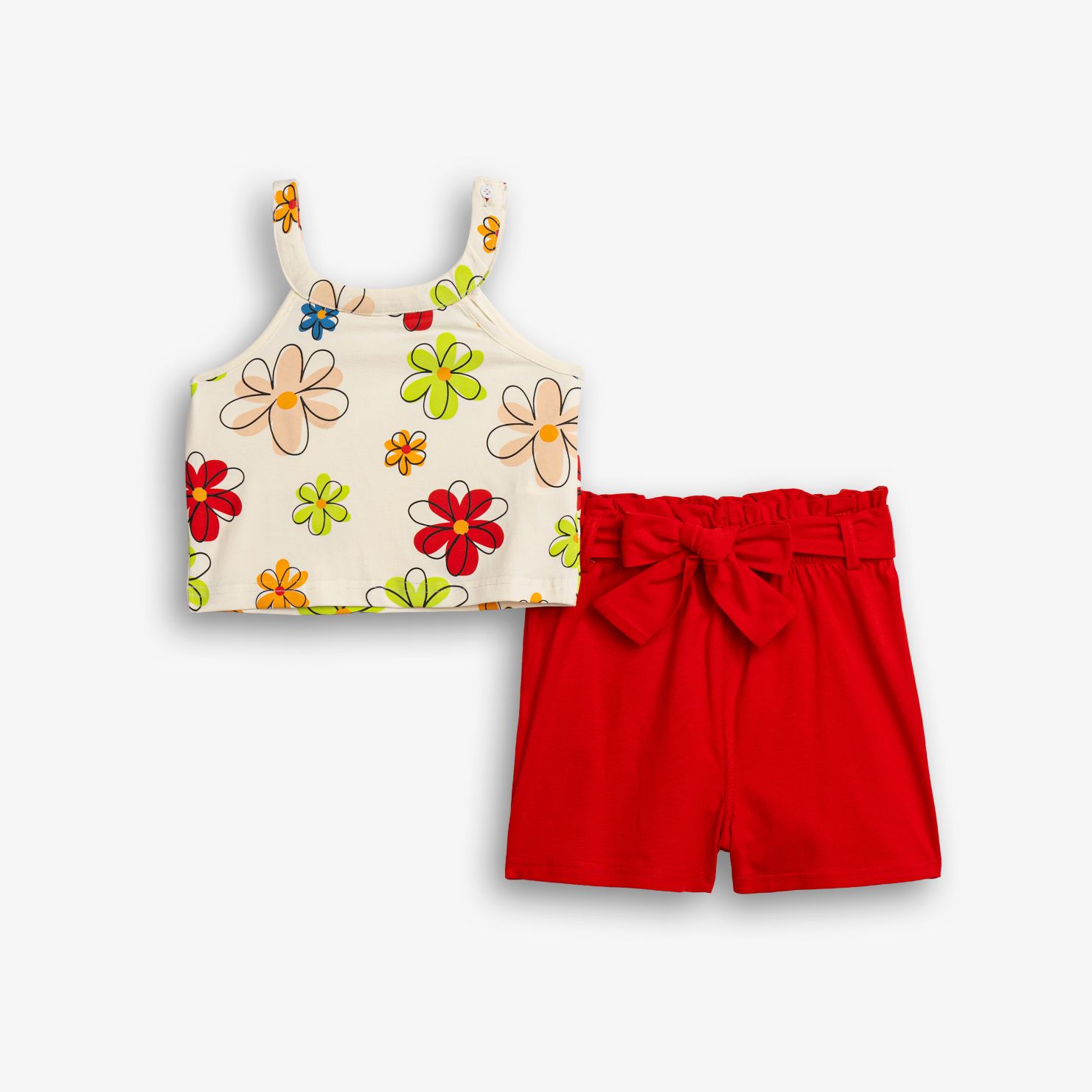 Σετ μπλουζάκι με τύπωμα (λουλούδια) allover και σόρτς κάλτσα λύκρα σε χρώμα εκρού/κόκκινο για κορίτσι 6-16 ετών