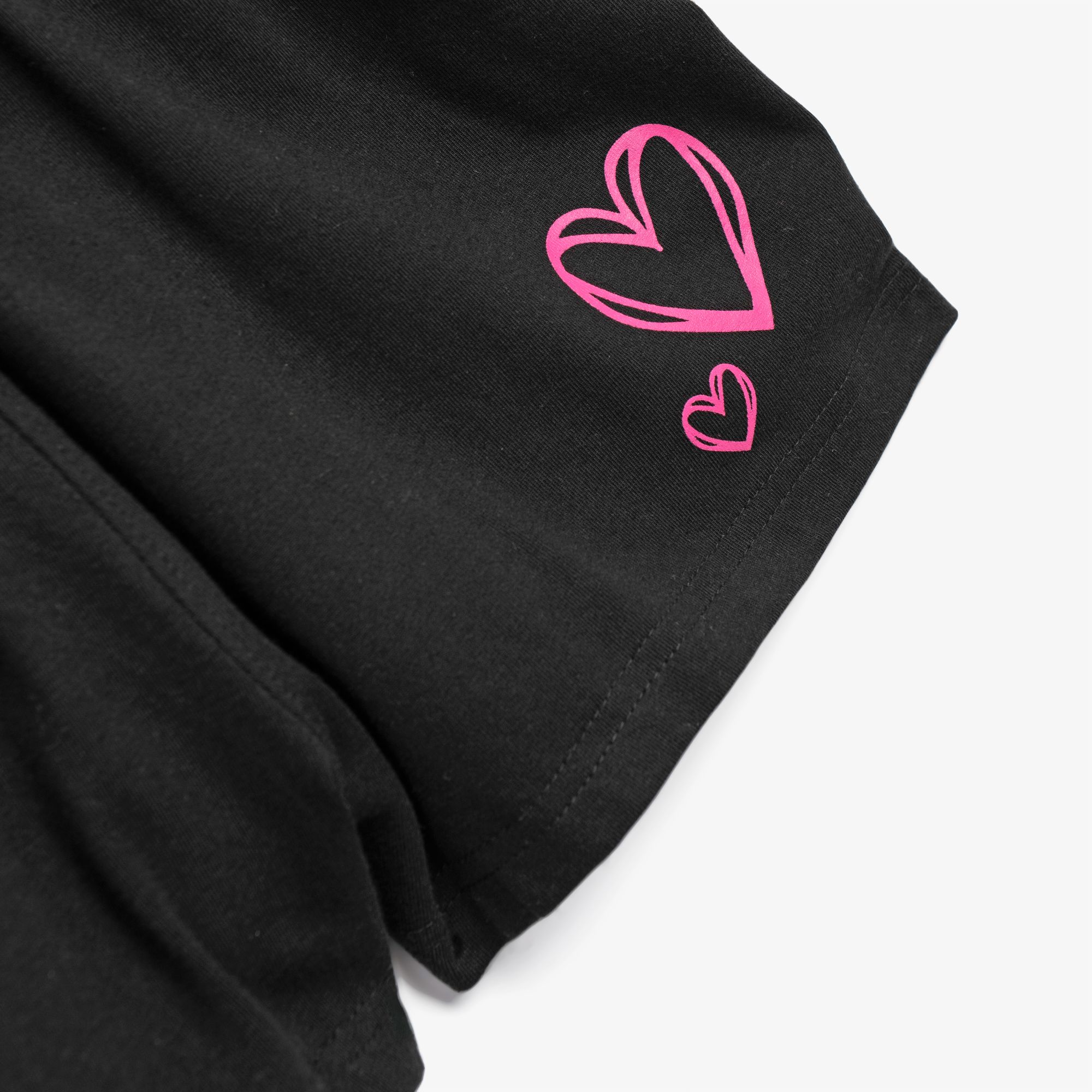 Σετ μπλουζάκι με τύπωμα (καρδούλες) allover και σόρτς κάλτσα λύκρα με τύπωμα σε χρώμα φούξ/μαύρο για κορίτσι 6-16 ετών