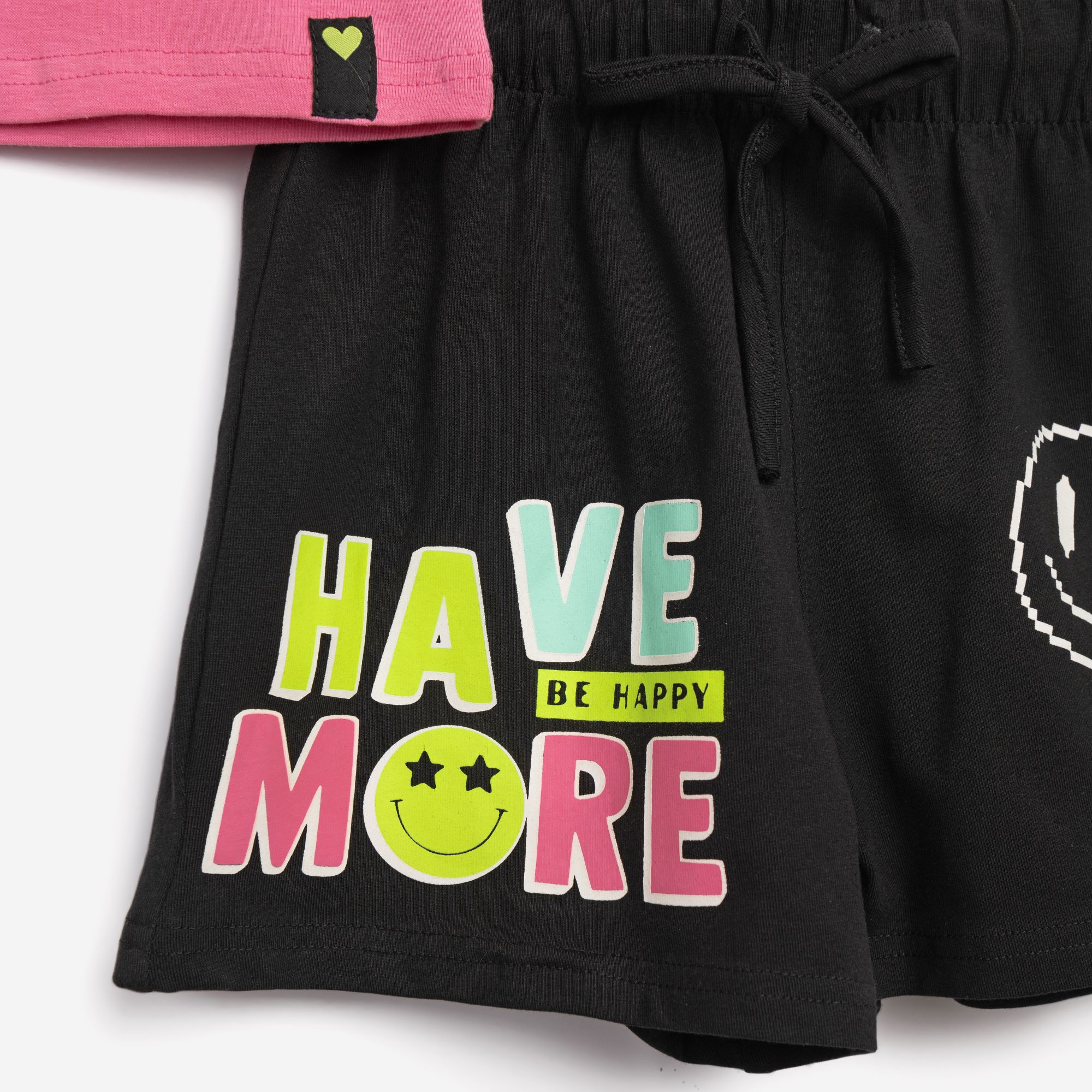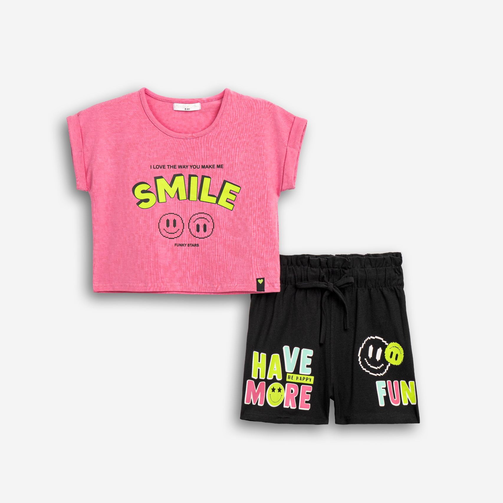 Σετ μπλουζάκι με τύπωμα (φατσούλες) και σόρτς κάλτσα λύκρα με τύπωμα σε χρώμα candy pink/μαύρο για κορίτσι 6-16 ετών