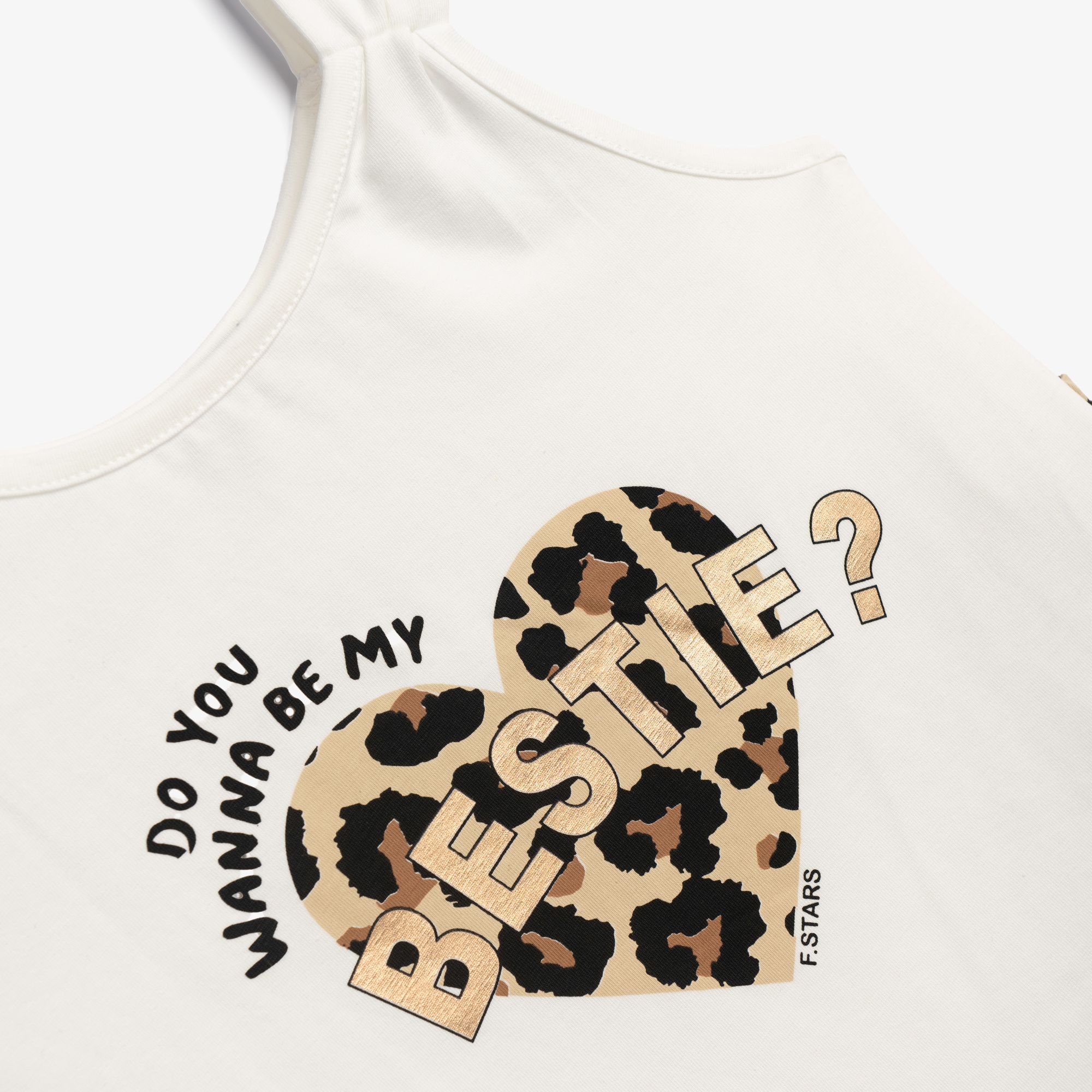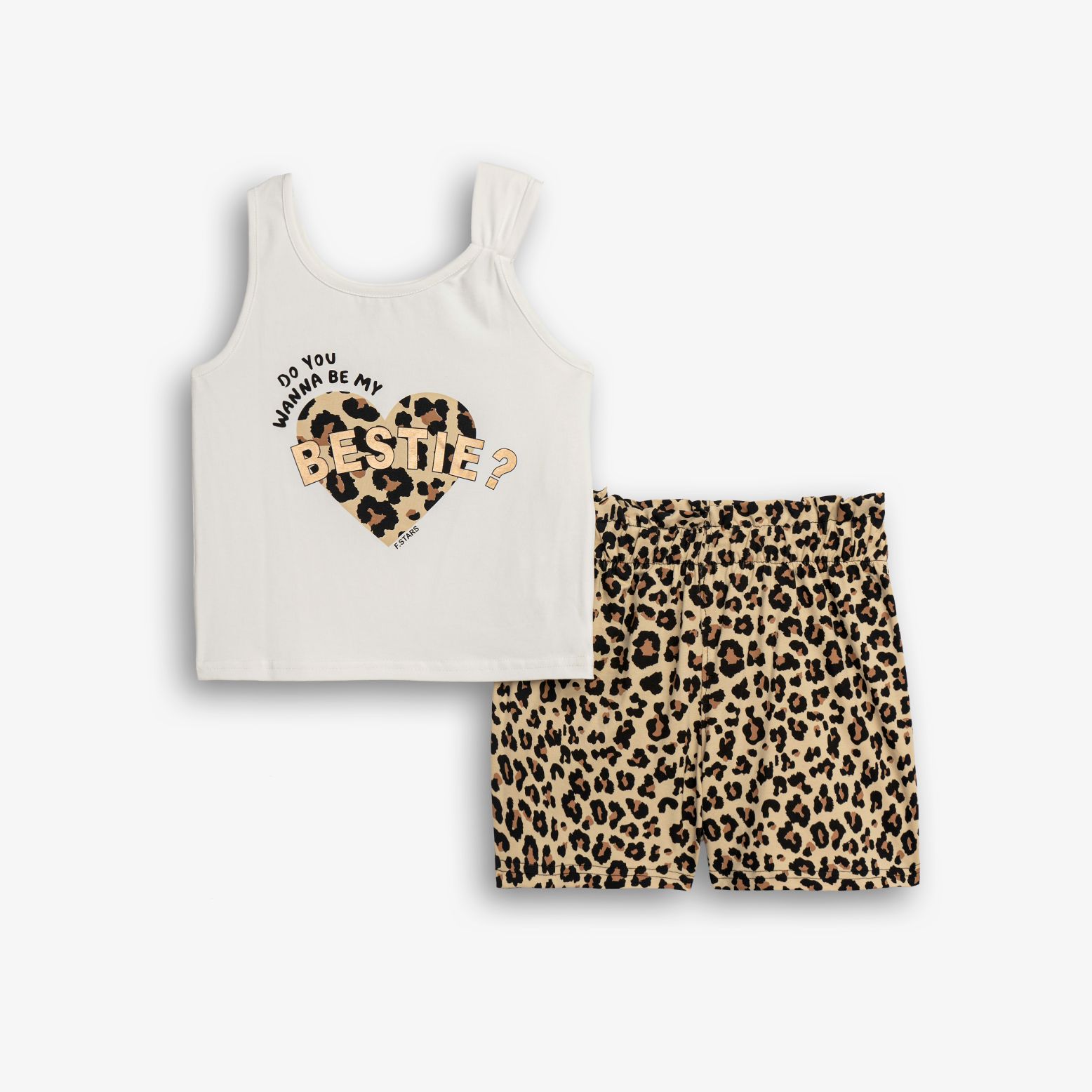 Σετ μπλουζάκι με τύπωμα (καρδια λεοπαρ) και σόρτς κάλτσα λύκρα με τύπωμα allover σε χρώμα εκρού/ανοιχτό μπέζ για κορίτσι 6-16 ετών