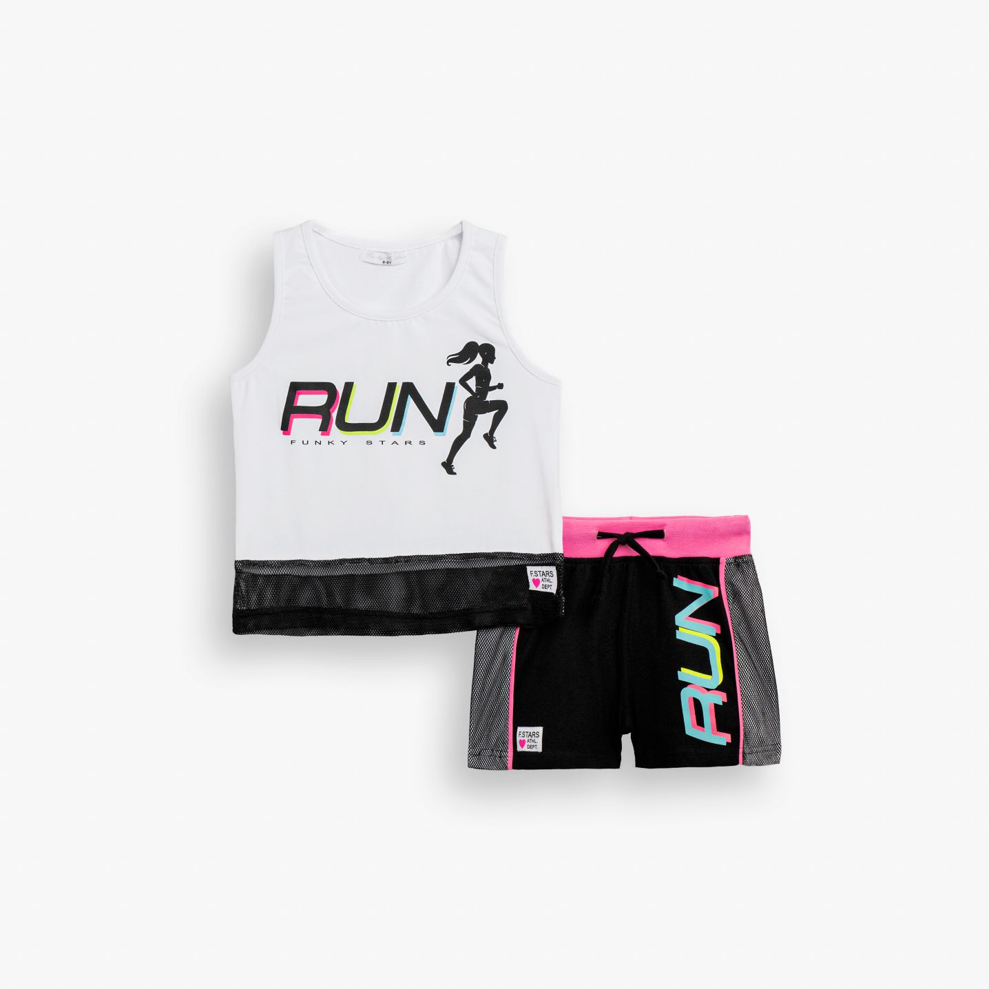 Σετ μπλουζάκι με τύπωμα (run) και σόρτς κάλτσα λύκρα με τύπωμα σε χρώμα λευκό/μαύρο για κορίτσι 6-16 ετών