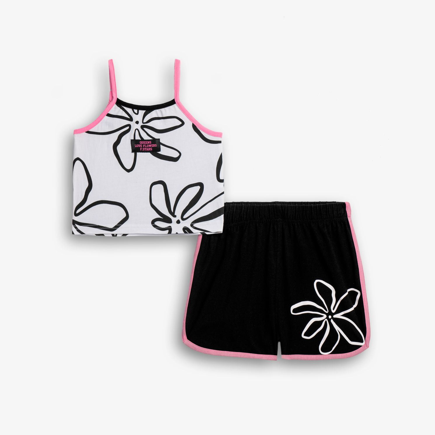 Σετ μπλουζάκι με τύπωμα (λουλούδι) allover και σόρτς κάλτσα λύκρα με τύπωμα σε χρώμα λευκό/μαύρο για κορίτσι 6-16 ετών