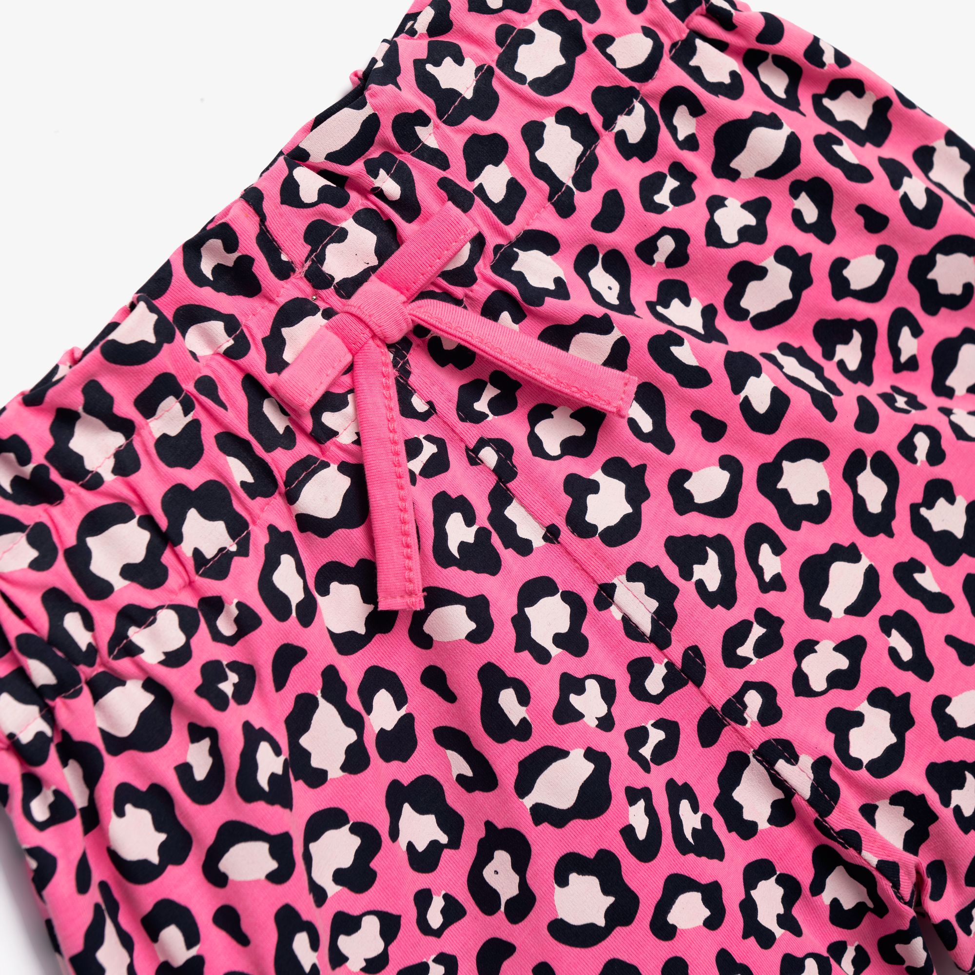 Σετ μπλουζάκι με τύπωμα (καρδιες και λεοπάρ) και σόρτς κάλτσα λύκρα με τύπωμα allover σε χρώμα μπλέ-φωσφορούχο ρόζ/φωσφορούχο ρόζ για κορίτσι 6-16 ετών