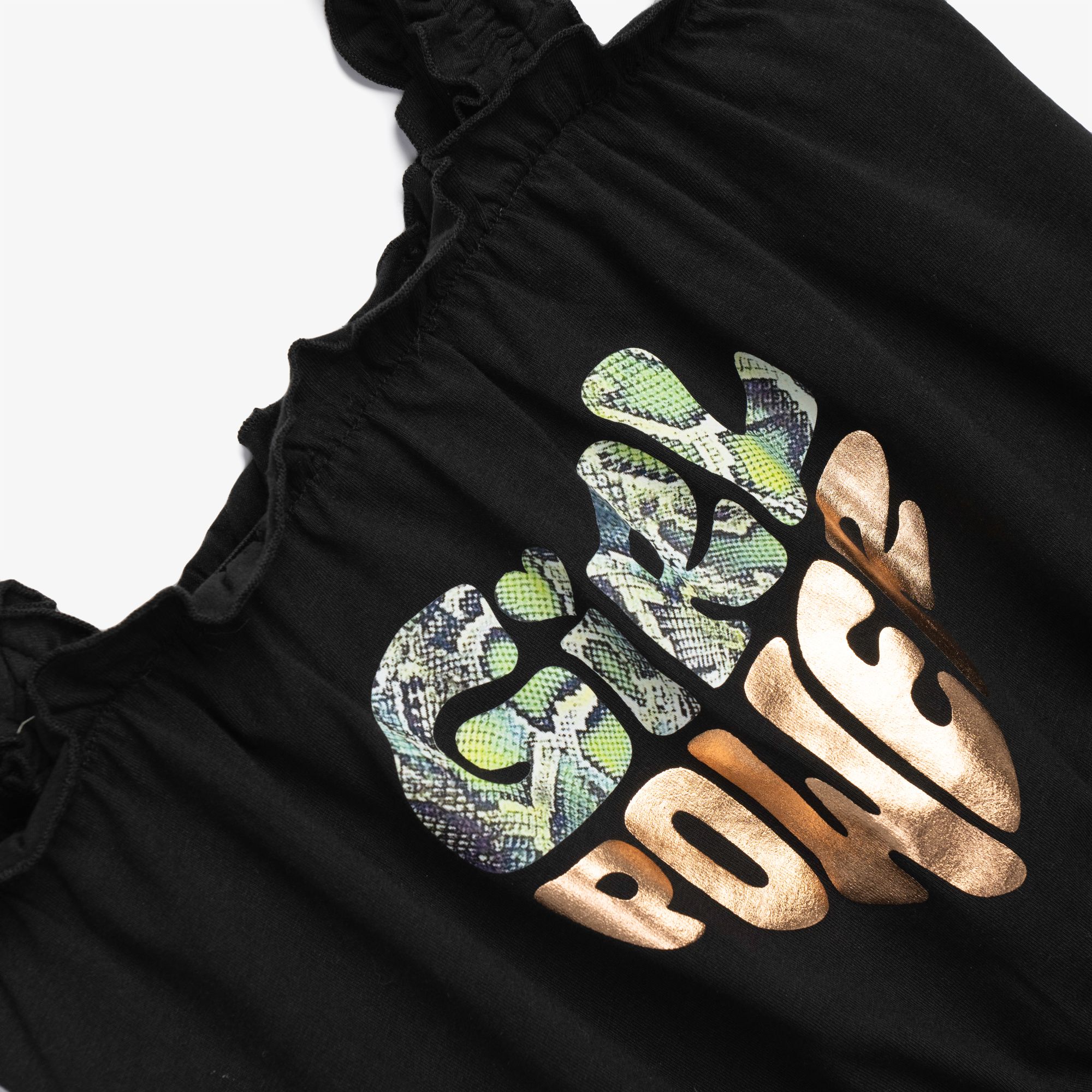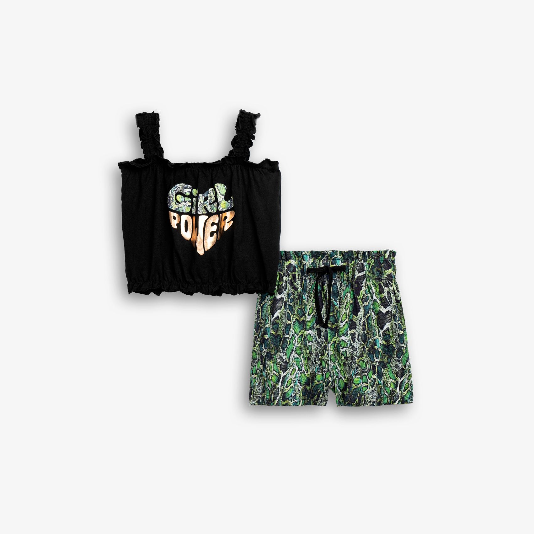 Σετ μπλουζάκι με τύπωμα (girl power και animal print) και σόρτς κάλτσα λύκρα με τύπωμα allover σε χρώμα μαύρο/λευκό για κορίτσι 6-16 ετών