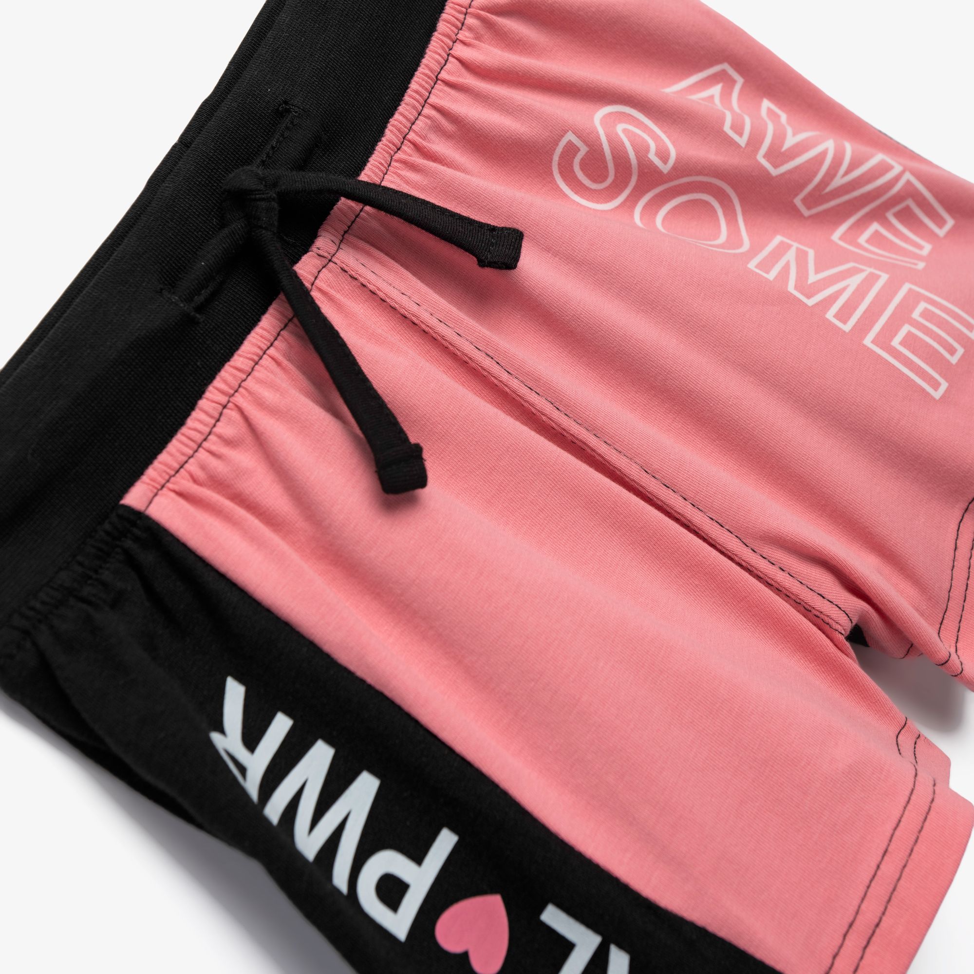 Σετ μπλουζάκι με τύπωμα (awesome) και σόρτς κάλτσα λύκρα με τύπωμα σε χρώμα μαύρο/crayon rouge-μαύρο για κορίτσι 6-16 ετών