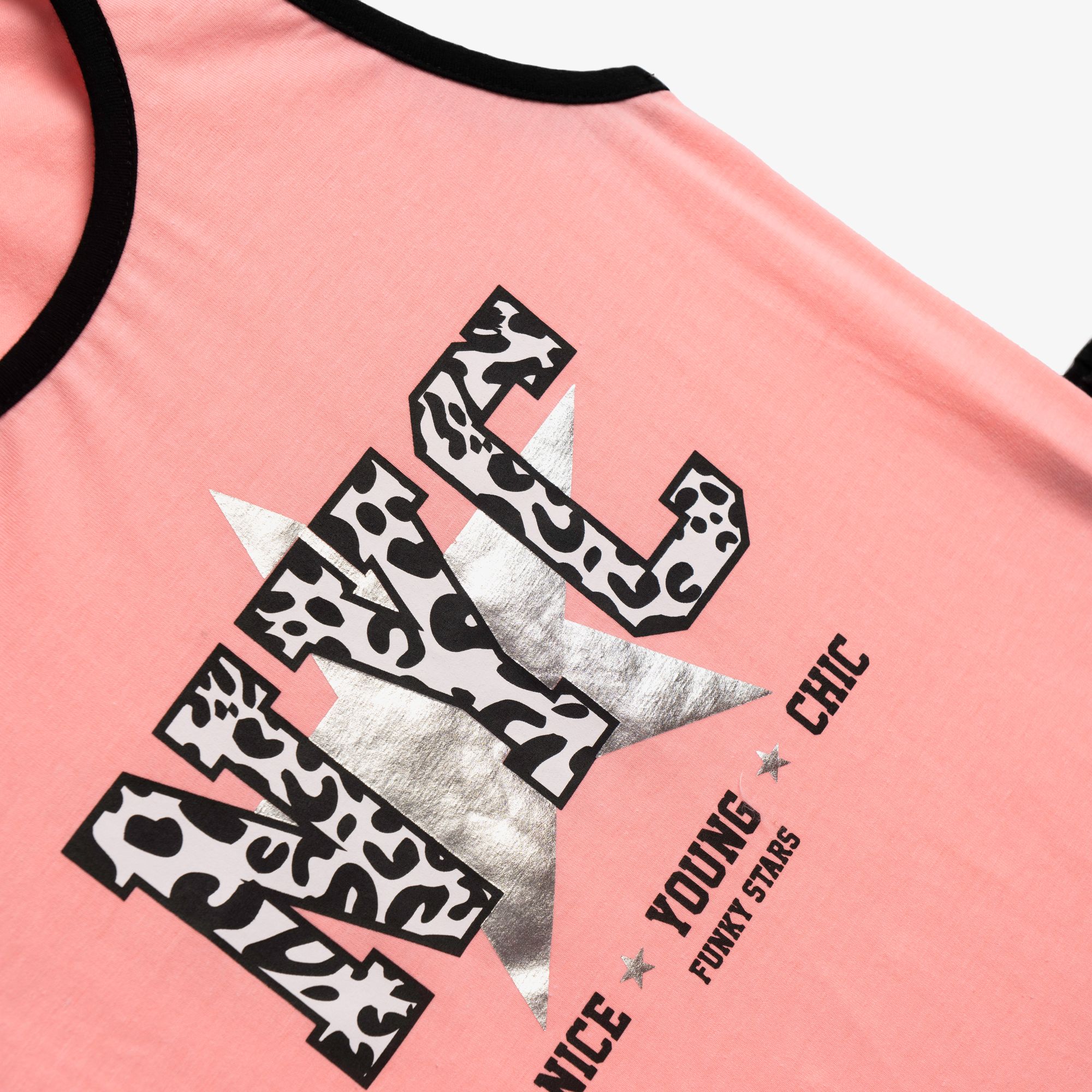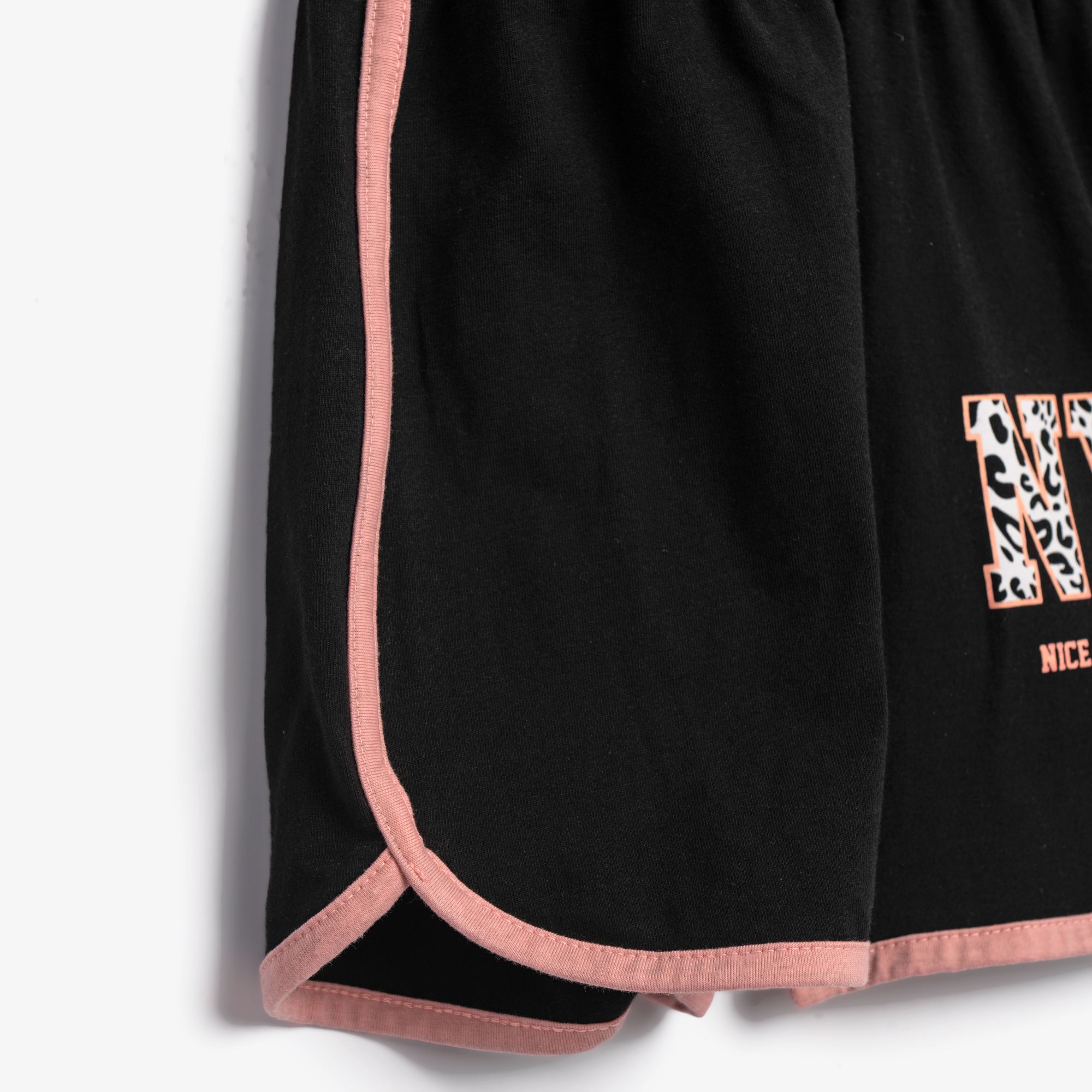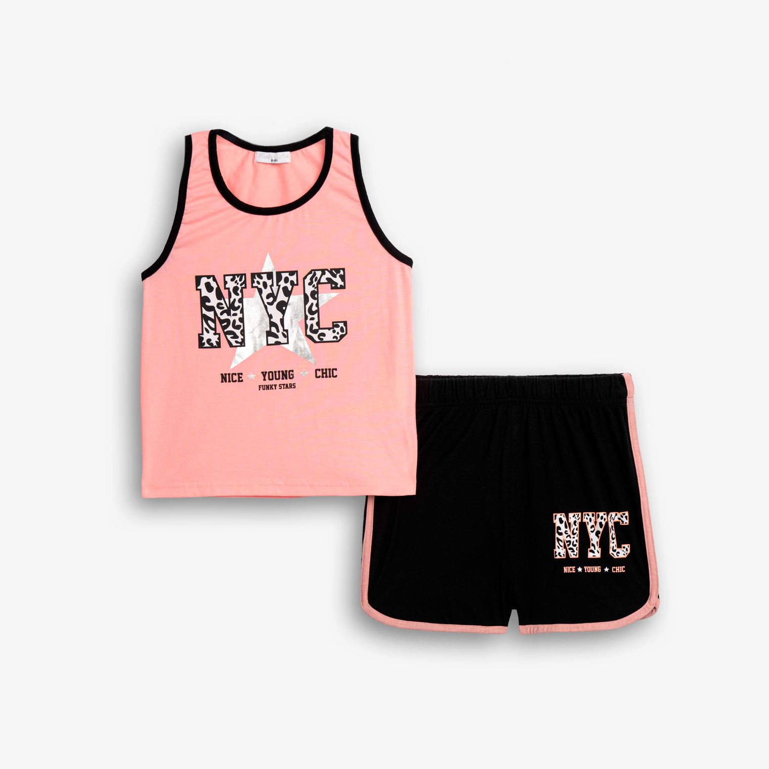 Σετ μπλουζάκι με τύπωμα (NYC) και σόρτς κάλτσα λύκρα με τύπωμα σε χρώμα φωσφορούχο ανοιχτό σομόν/μαύρο για κορίτσι 6-16 ετών