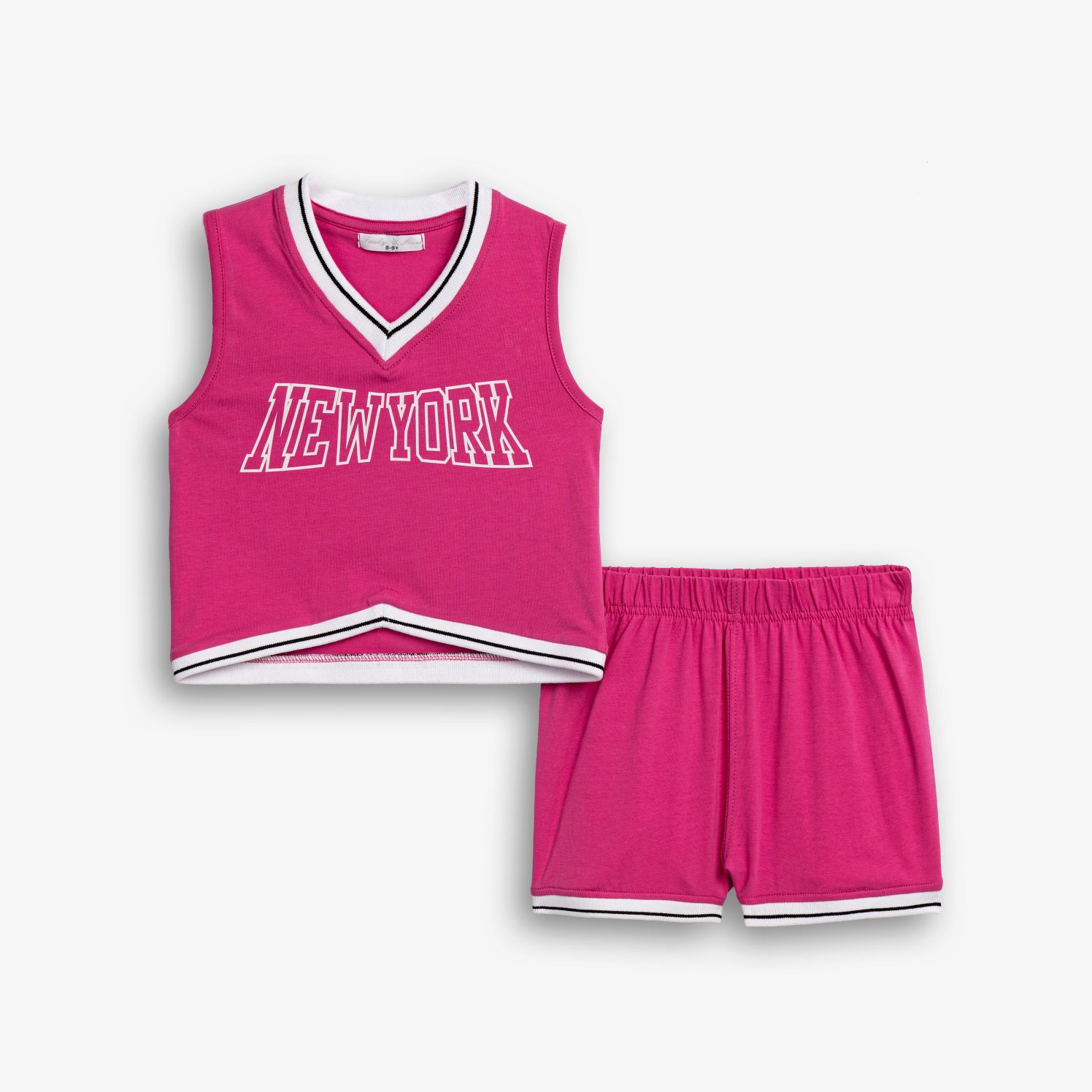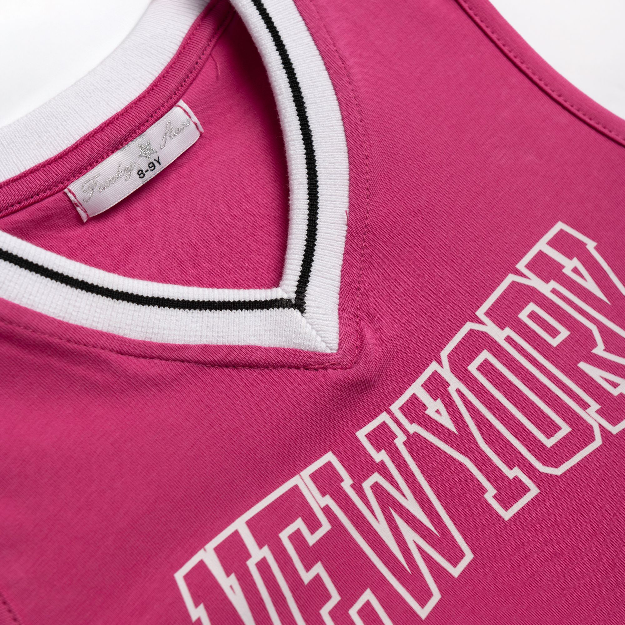 Σετ μπλουζάκι με τύπωμα (New York) και σόρτς κάλτσα λύκρα σε χρώμα φούξ/φούξ για κορίτσι 6-16 ετών
