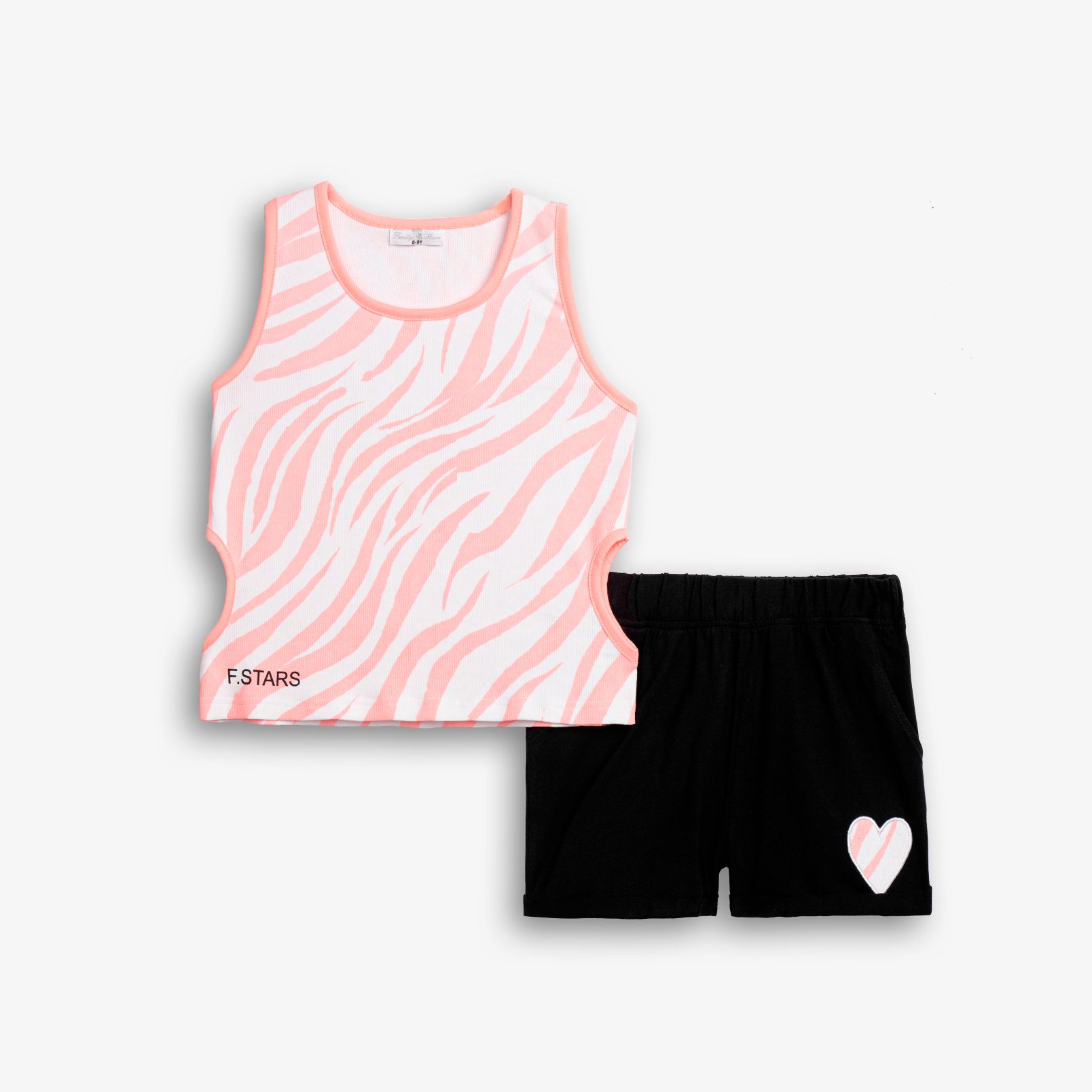 Σετ μπλουζάκι κάλτσα λύκρα με τύπωμα (animal print) allover με σόρτς ριπ σε χρώμα λευκό-φωσφορούχο σομόν/μαύρο για κορίτσι 6-16 ετών