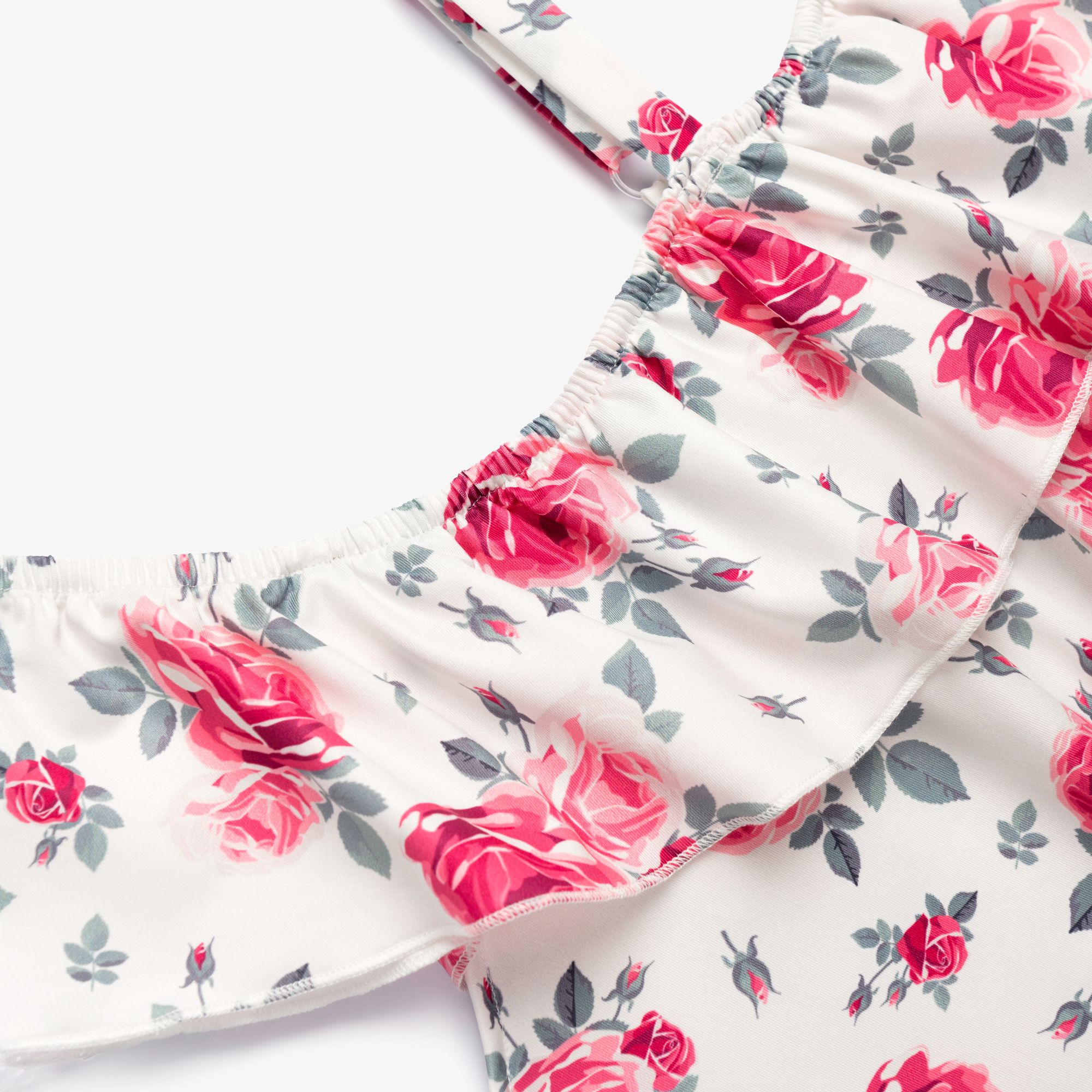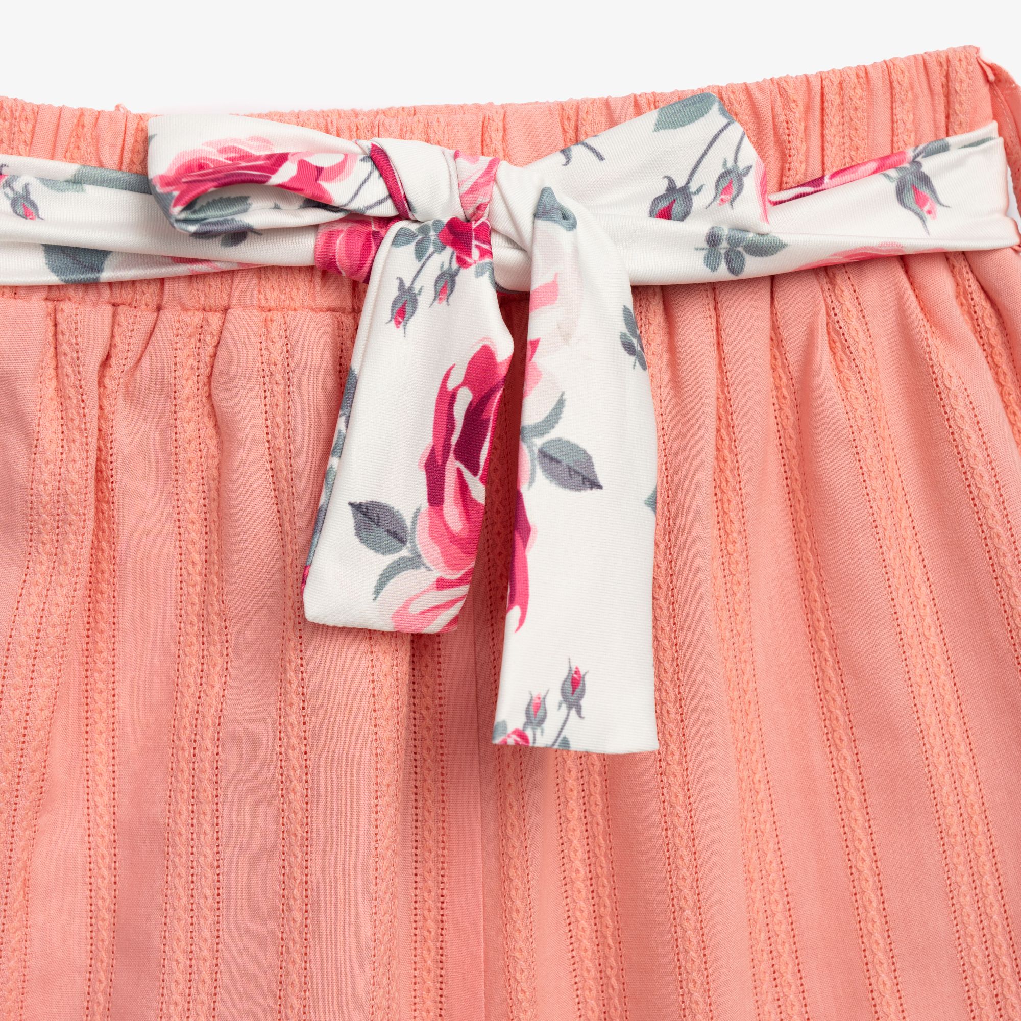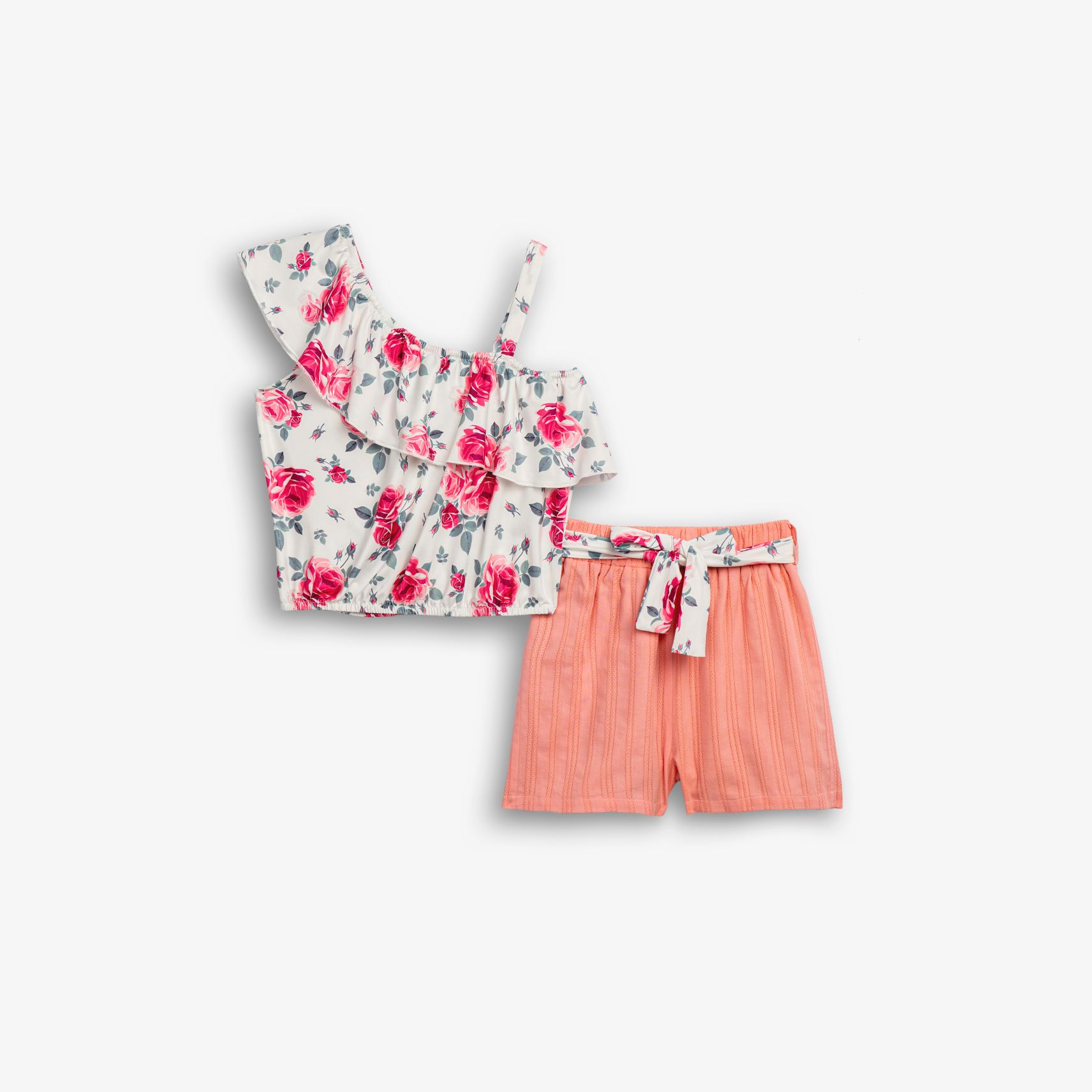 Σετ μπλούζα με τύπωμα (λουλούδια) allover και σόρτς με ζώνη σε χρώμα λευκό/φλαμίνγκο για κορίτσι 6-16 ετών