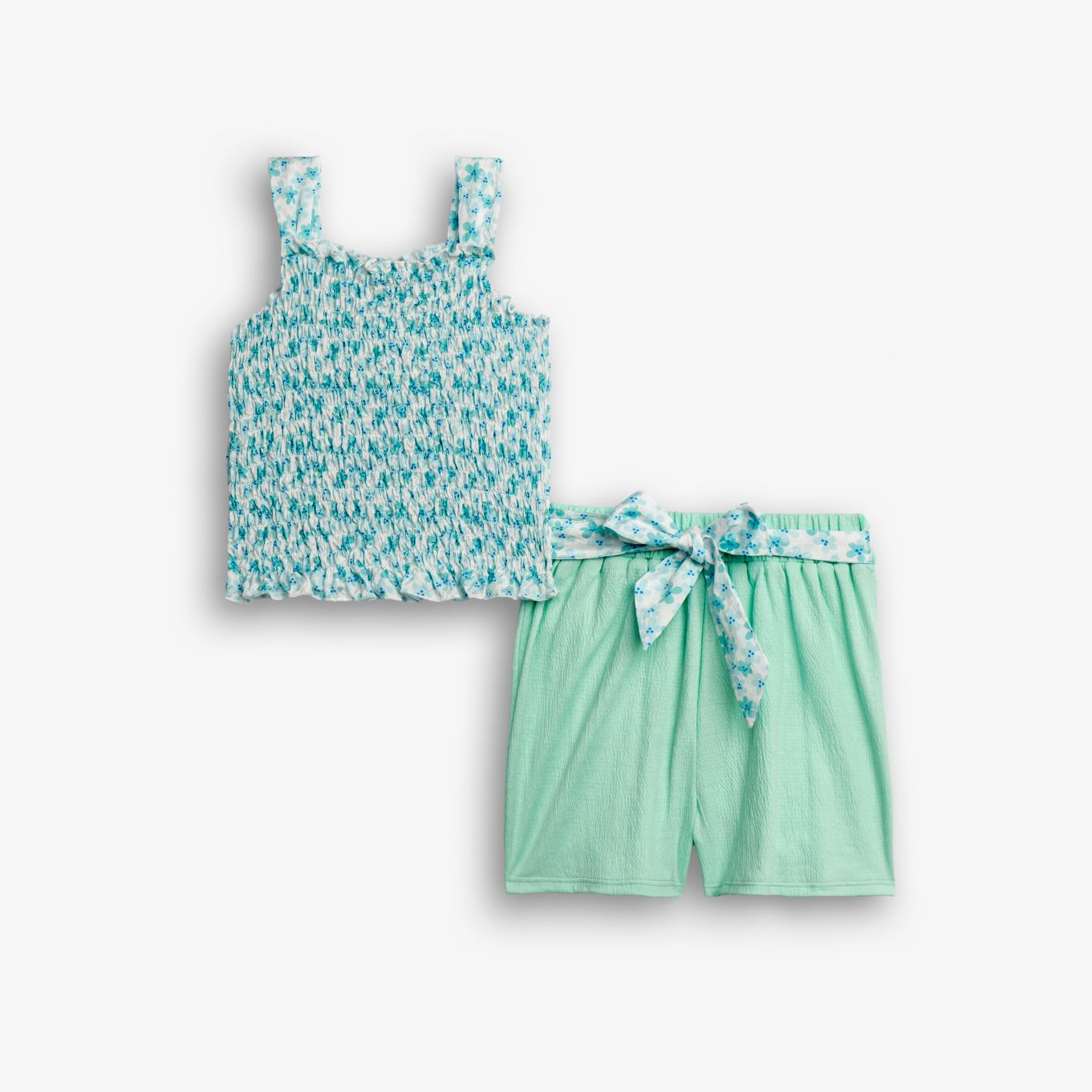 Σετ μπλούζα με τύπωμα (λουλούδια) allover και σόρτς με ζώνη σε χρώμα τύπος για κορίτσι 6-16 ετών
