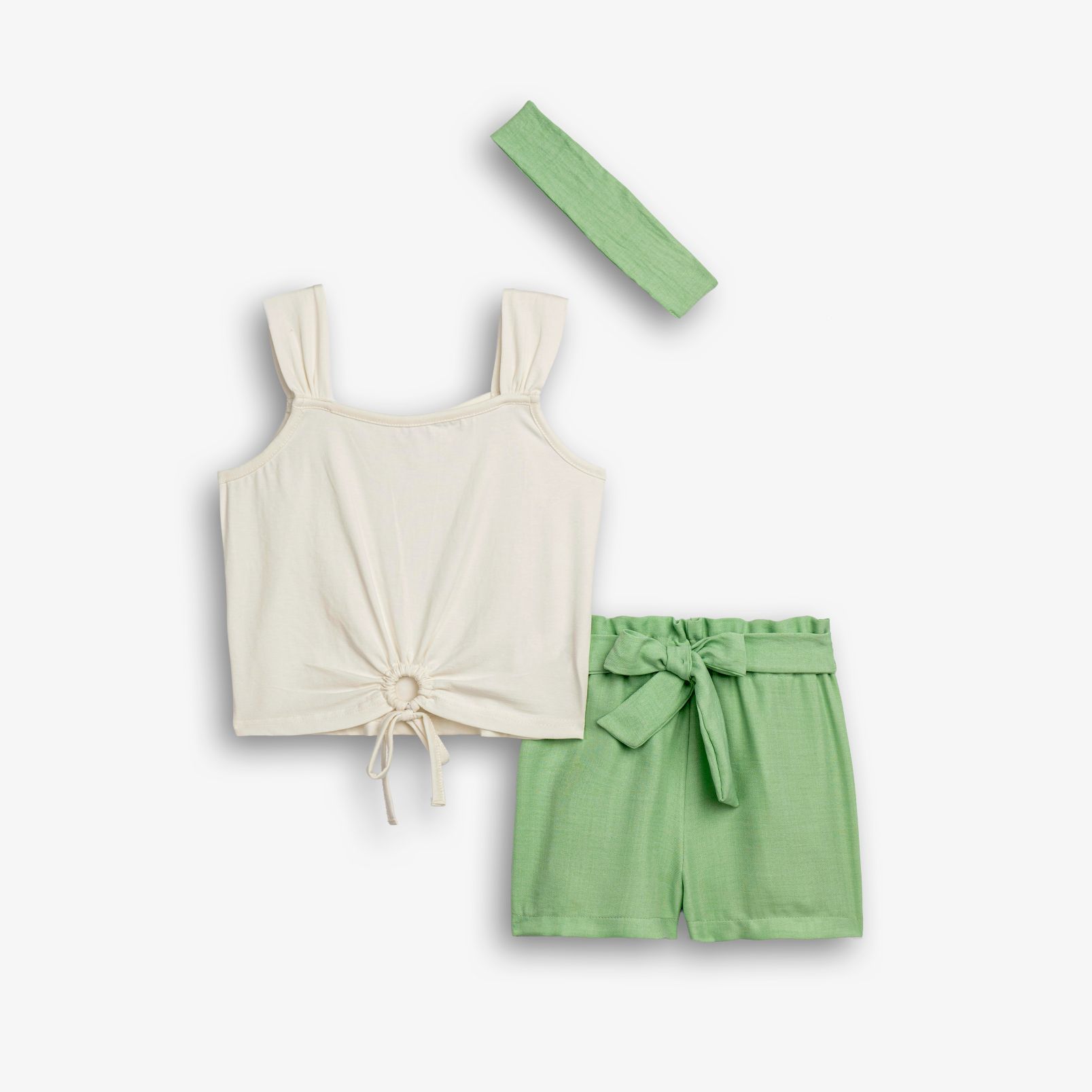 Σετ μπλούζα με σόρτς και κορδέλα σε χρώμα εκρού/τύπος για κορίτσι 6-16 ετών