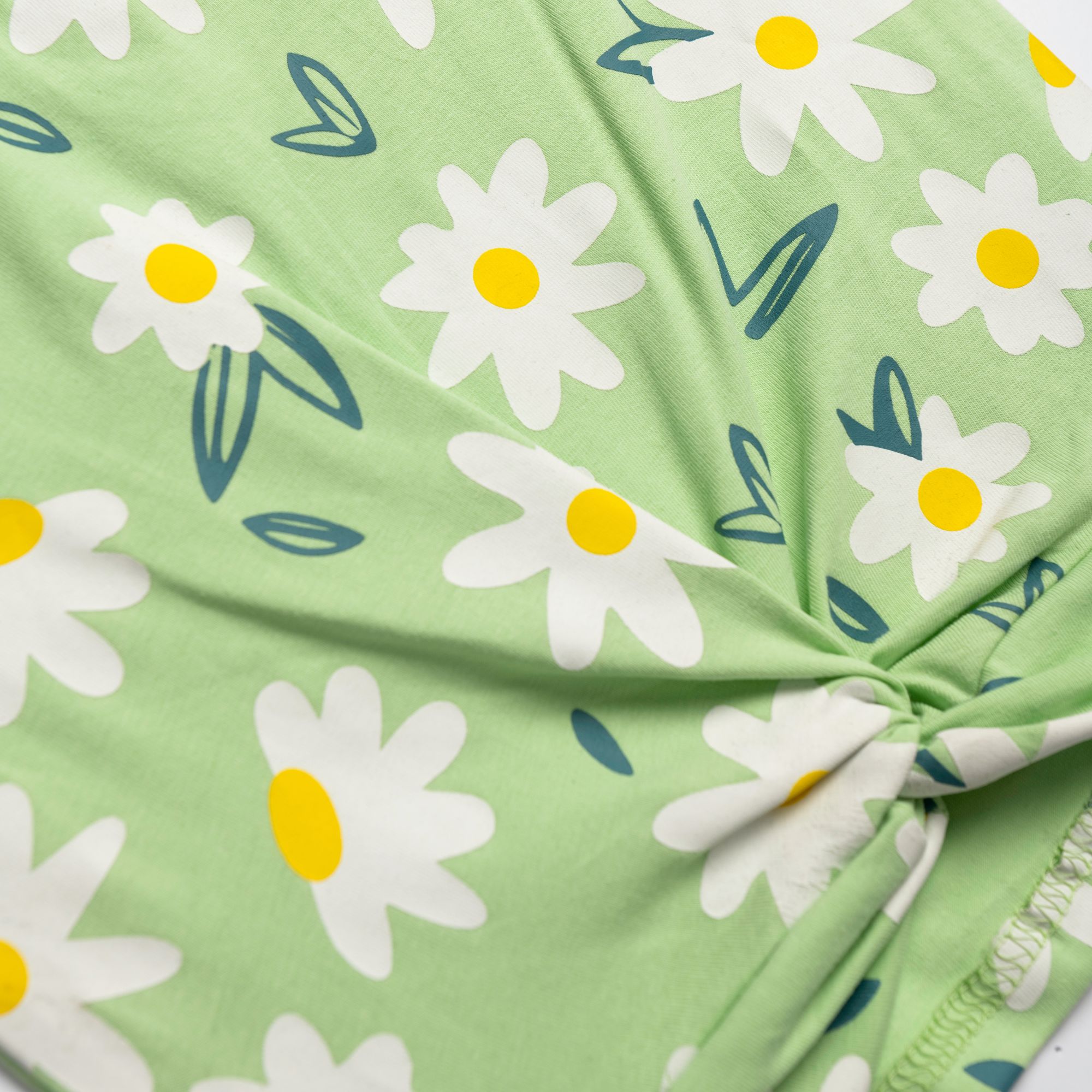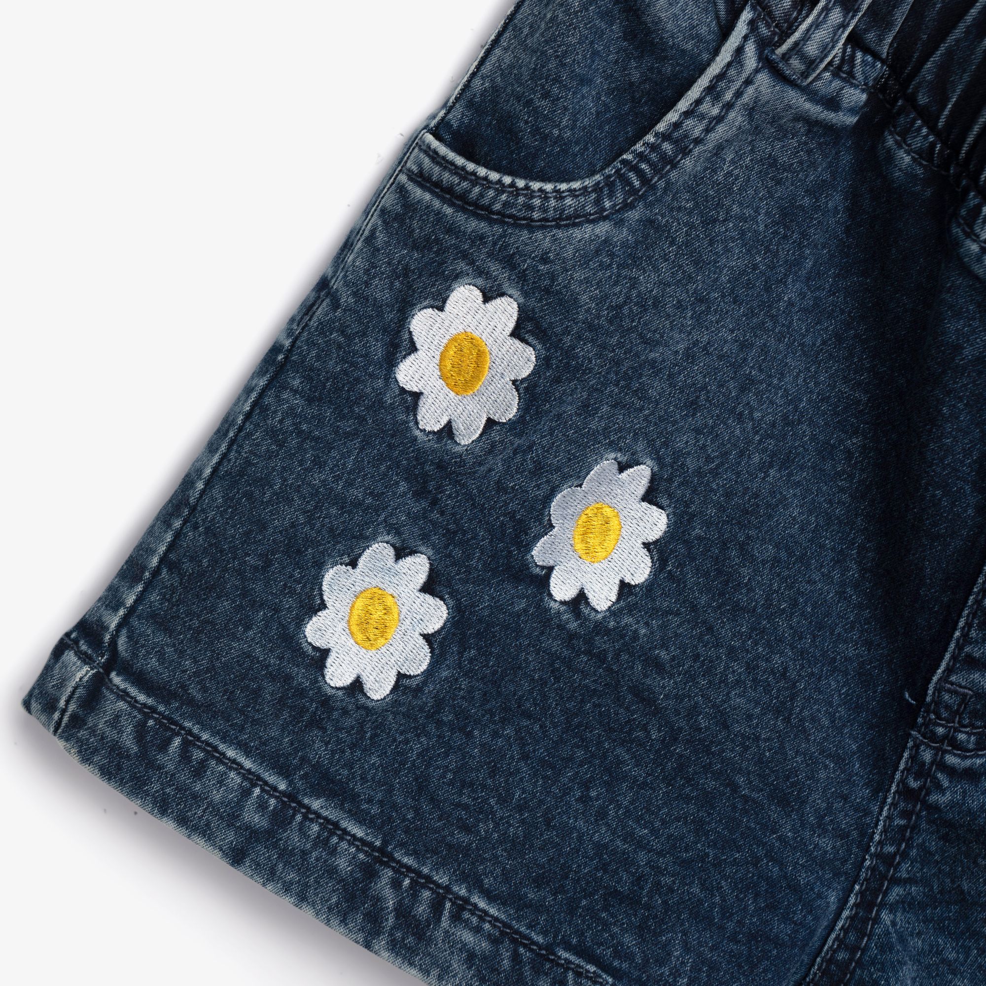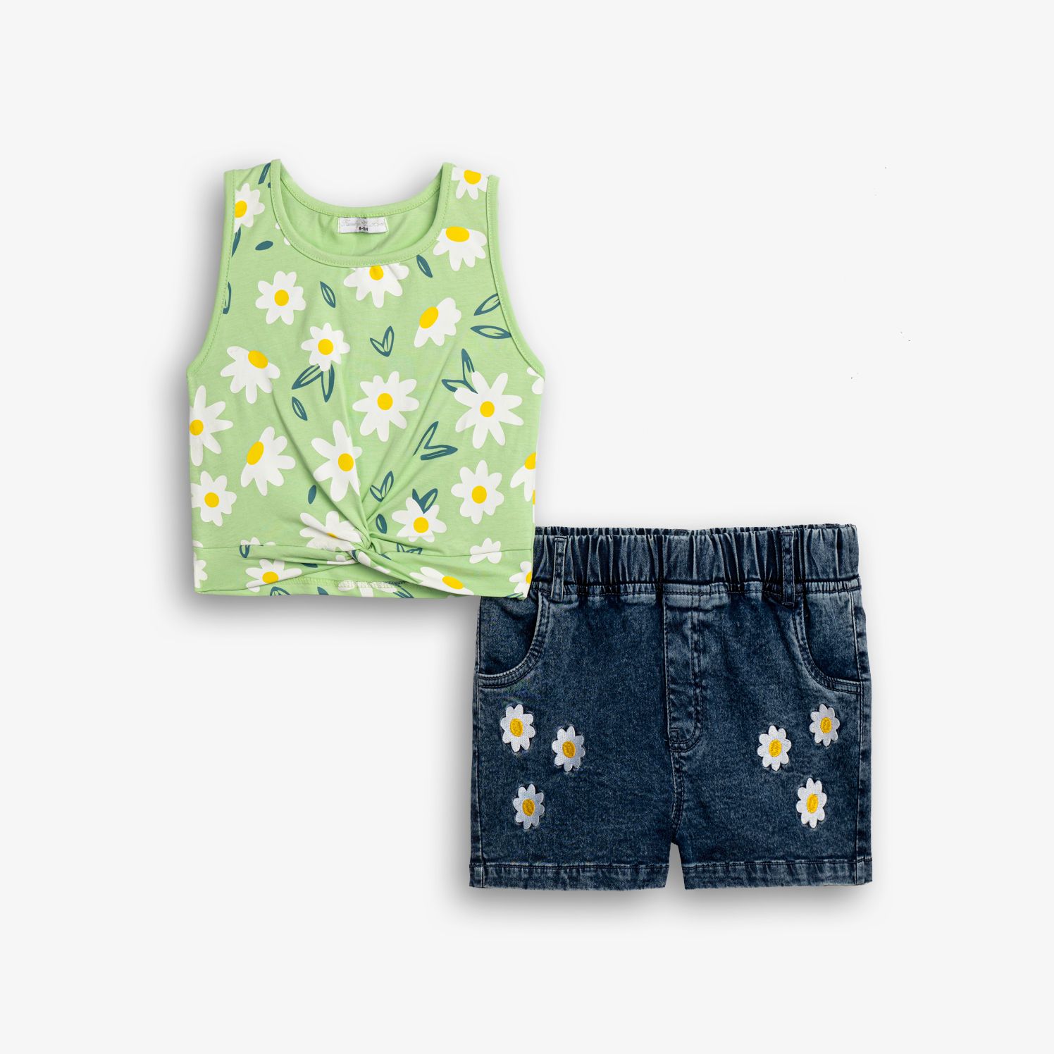 Σετ μπλούζα κάλτσα λύκρα με τύπωμα (λουλούδια) allover και σόρτς τζίν λύκρα σε χρώμα paradise green/μπλέ τζίν για κορίτσι 6-16 ετών