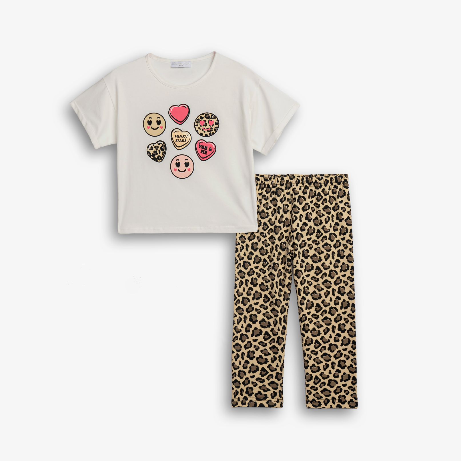 Σετ μπλούζα με τύπωμα (φατσούλες) και κολάν κάπρι κάλτσα λύκρα με τύπωμα σε χρώμα λευκό/μαύρο για κορίτσι 6-16 ετών