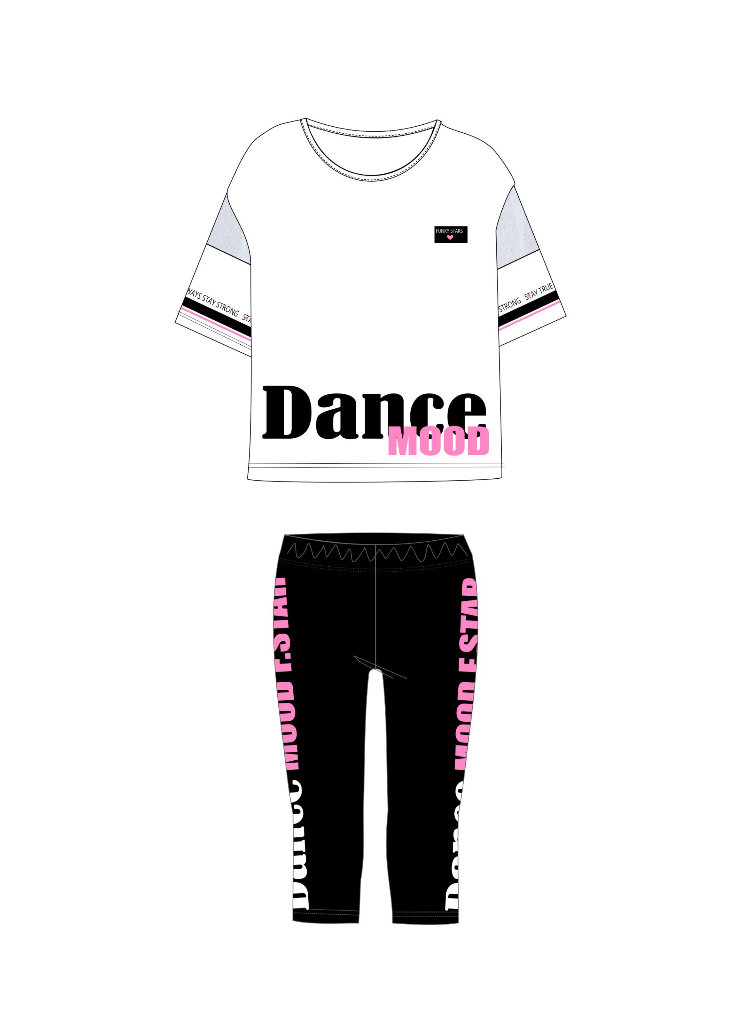 Σετ μπλούζα με τύπωμα (dance) και κολάν κάπρι κάλτσα λύκρα με τύπωμα σε χρώμα λευκό/μαύρο για κορίτσι 6-16 ετών