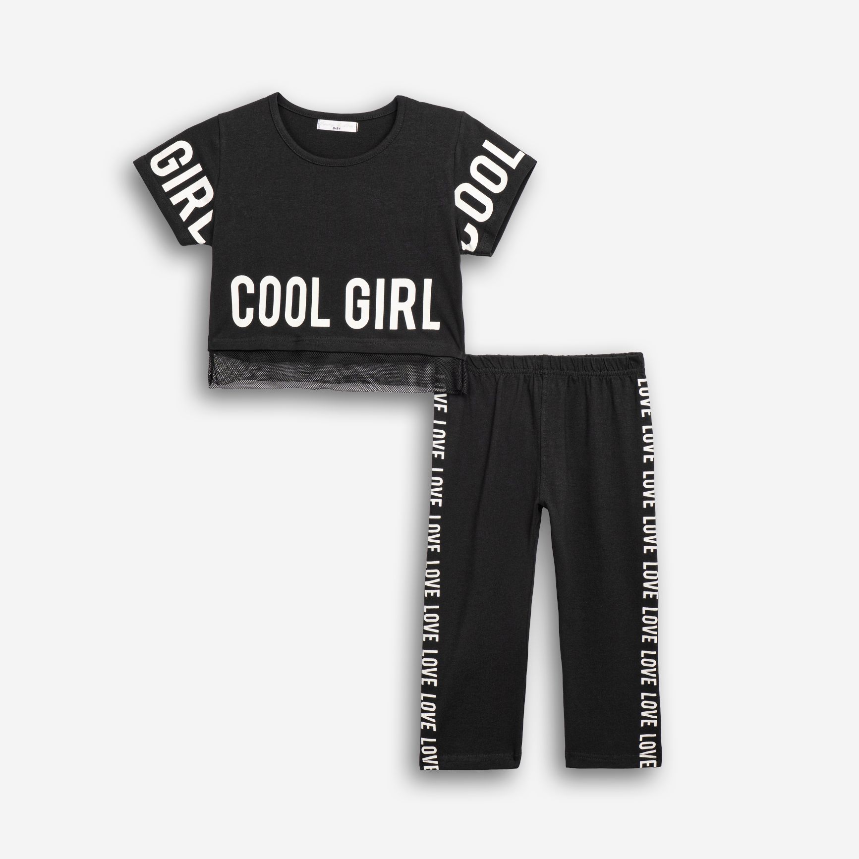 Σετ μπλούζα με τύπωμα (cool girl) και κολάν κάπρι κάλτσα λύκρα με τύπωμα σε χρώμα μαύρο/μαύρο για κορίτσι 6-16 ετών