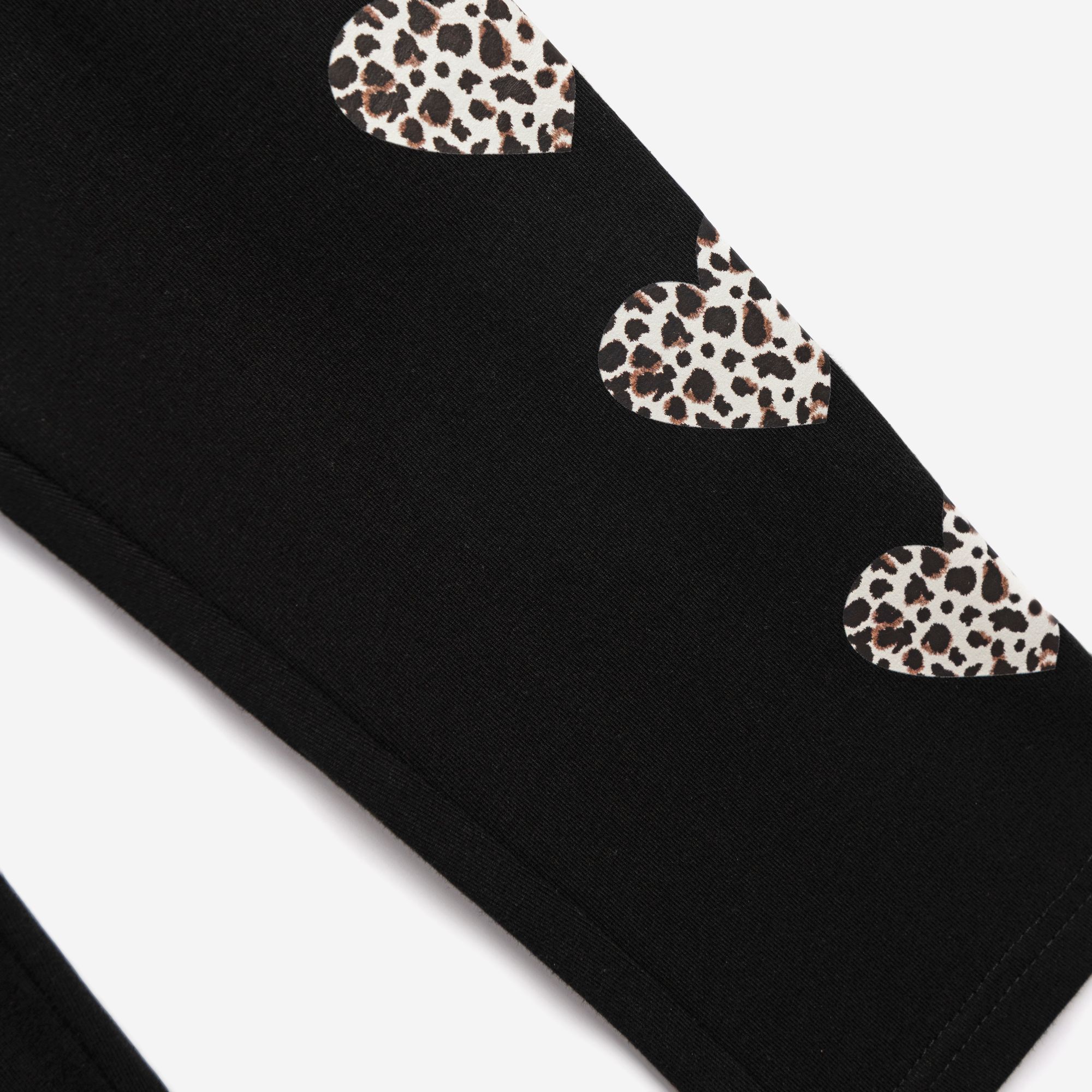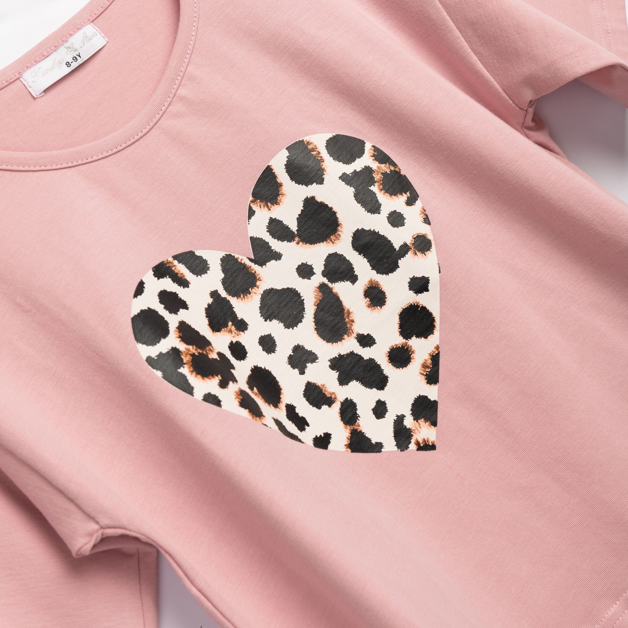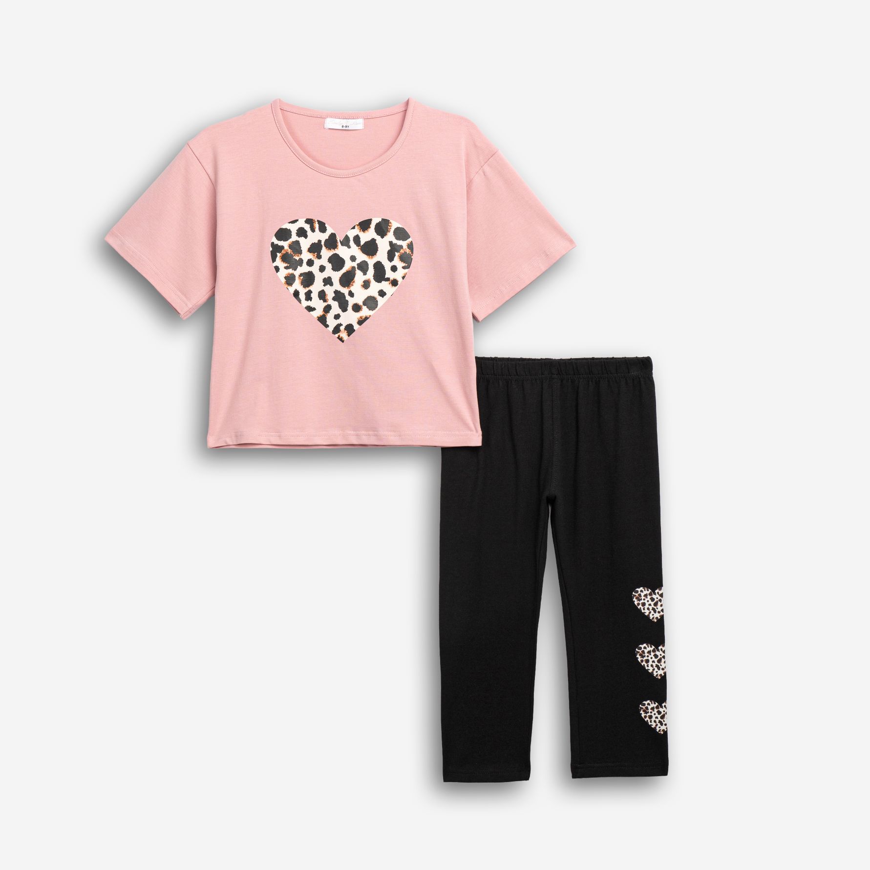 Σετ μπλούζα με τύπωμα (λεοπάρ καρδιά) και κολάν κάπρι κάλτσα λύκρα με τύπωμα σε χρώμα άγριο τριαντάφυλλο/μαύρο για κορίτσι 6-16 ετών
