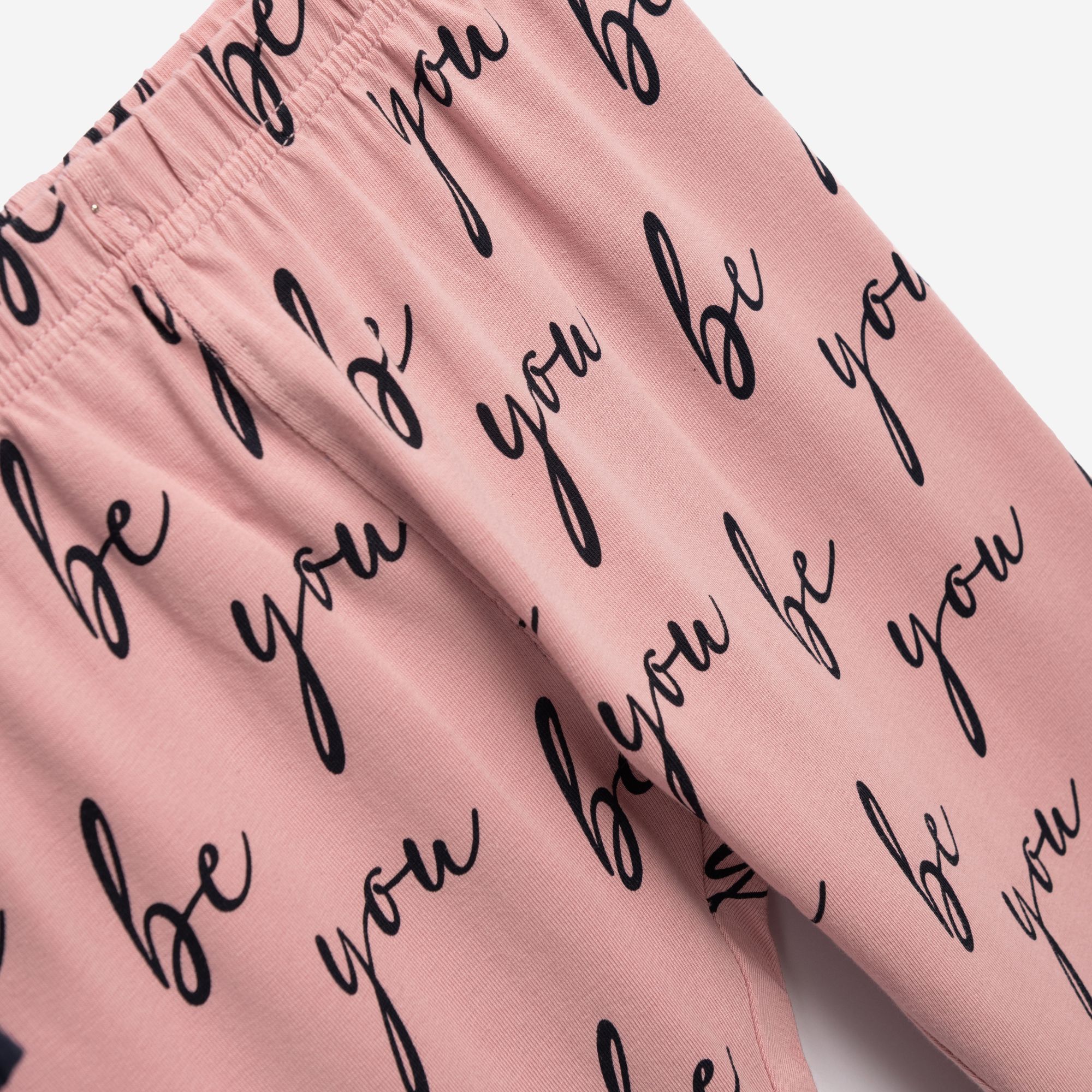 Σετ μπλούζα με τύπωμα (be you) και κολάν κάπρι κάλτσα λύκρα με τύπωμα σε χρώμα μπλέ/άγριο τριαντάφυλλο για κορίτσι 6-16 ετών