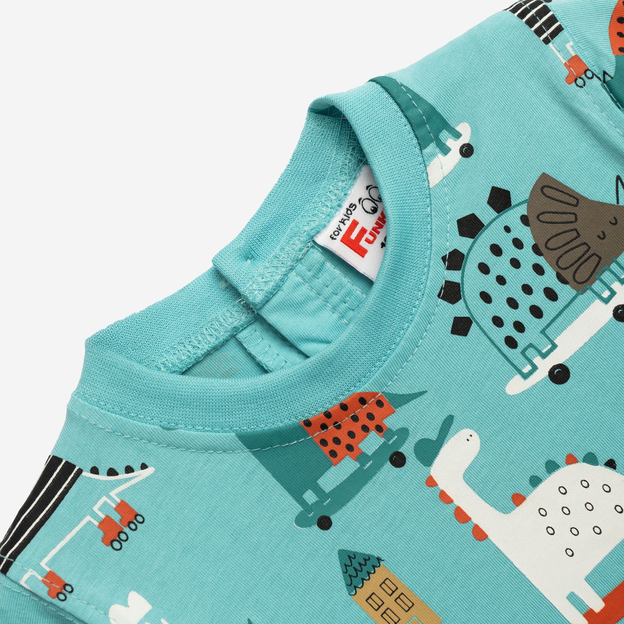 Σετ μπλούζα μακό με τύπωμα (δεινοσαυράκια) allover και σόρτς με τύπωμα σε χρώμα τιρκουάζ/μαύρο για αγόρι μηνών