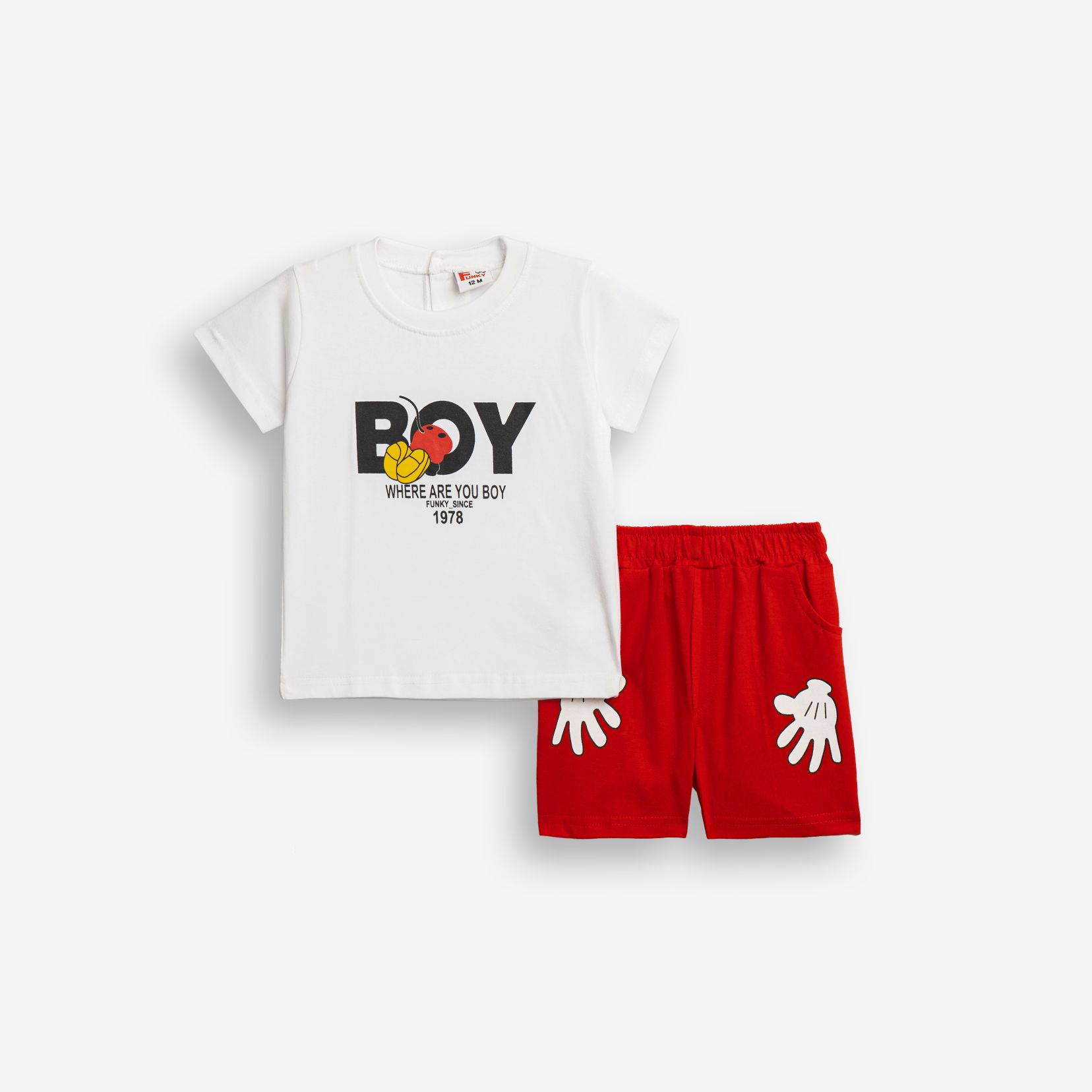 Σετ μπλούζα μακό με τύπωμα (ΒΟΥ) και σόρτς με τύπωμα σε χρώμα λευκό/κόκκινο για αγόρι μηνών