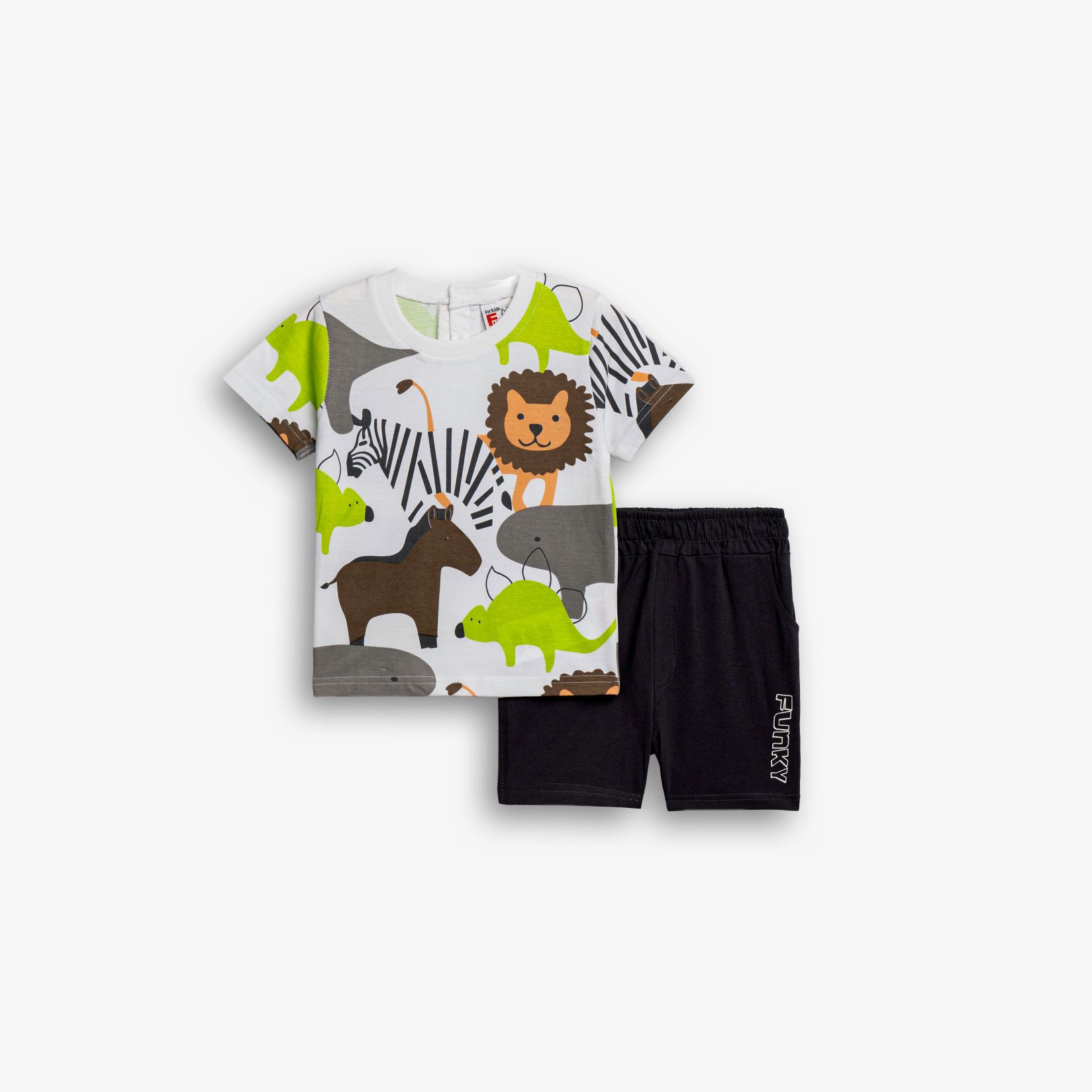 Σετ μπλούζα μακό με τύπωμα (ζωάκια) allover και σόρτς με τύπωμα σε χρώμα λευκό/ανθρακί για αγόρι μηνών