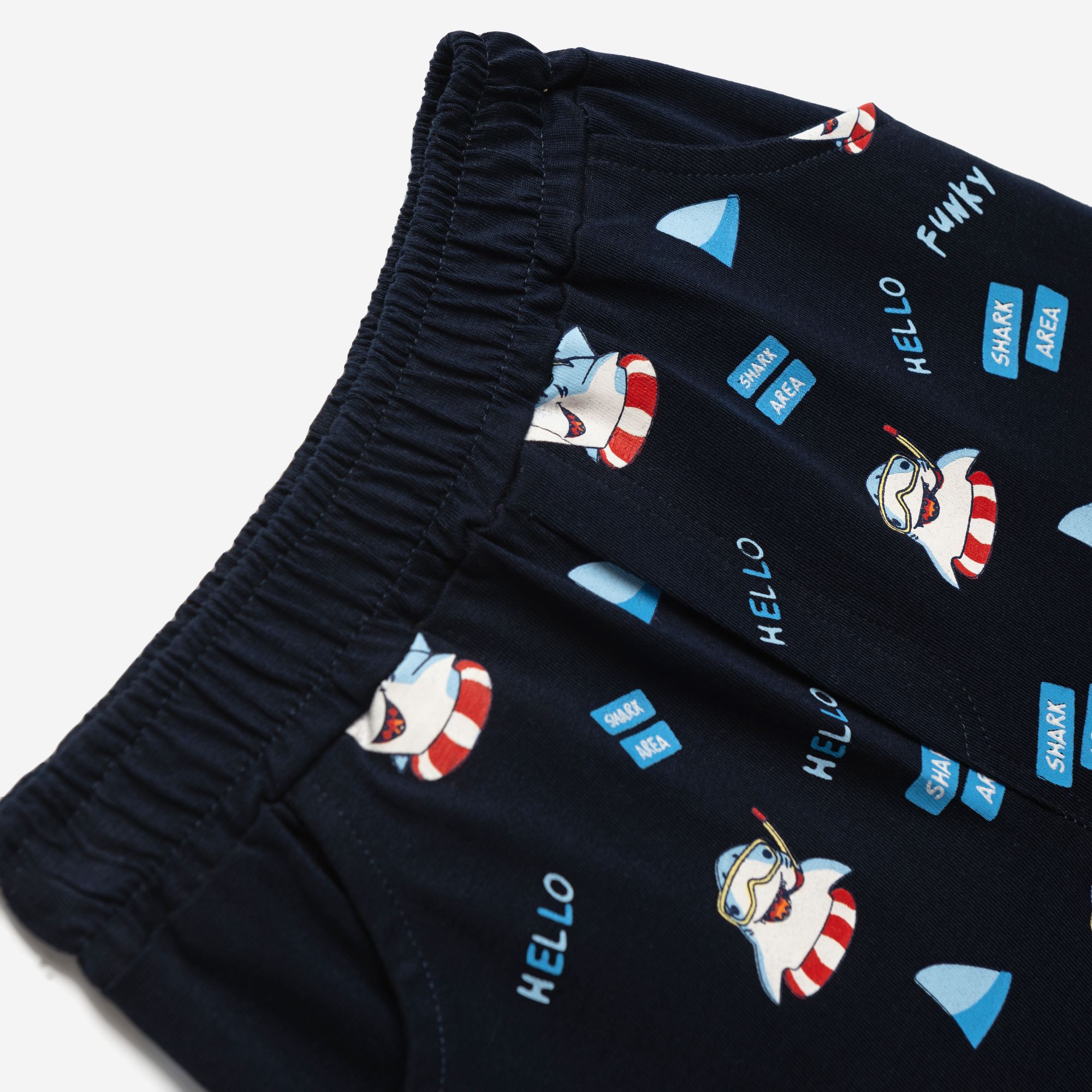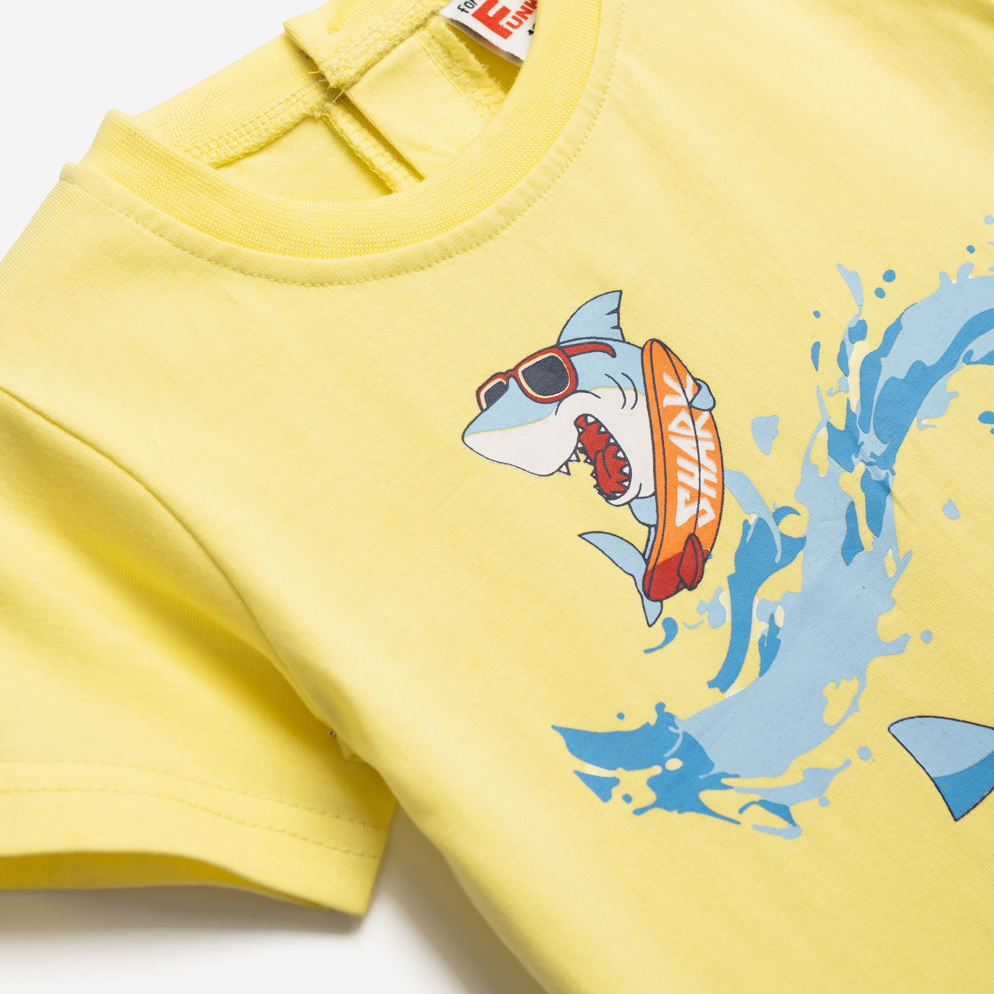 Σετ μπλούζα μακό με τύπωμα (καρχαρίες) και σόρτς με τύπωμα allover σε χρώμα ανοιχτό κίτρινο/μπλέ για αγόρι μηνών