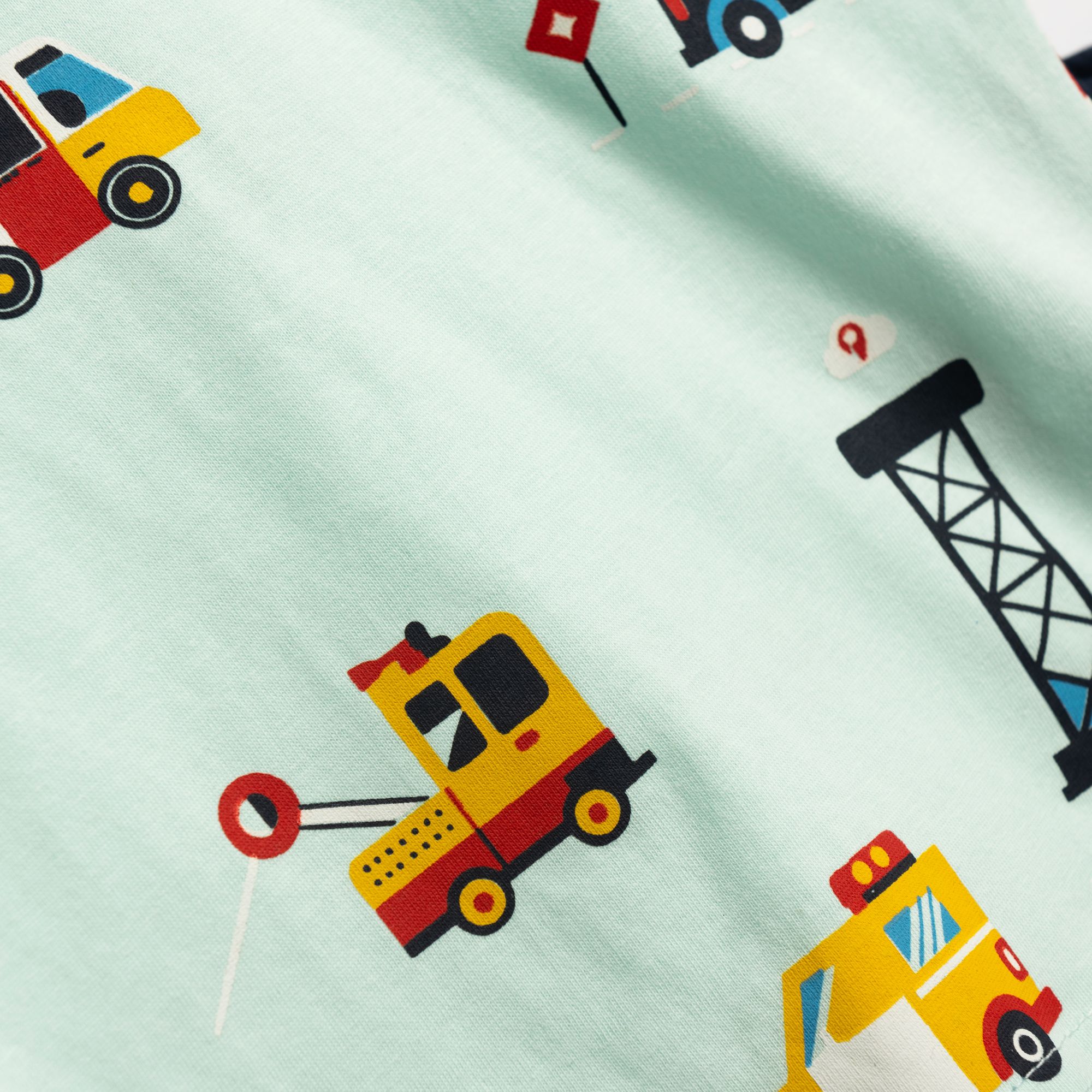 Σετ μπλούζα μακό με τύπωμα (οχήματα) allover και σόρτς με τύπωμα σε χρώμα ανοιχτό άκουα/μπλέ για αγόρι μηνών