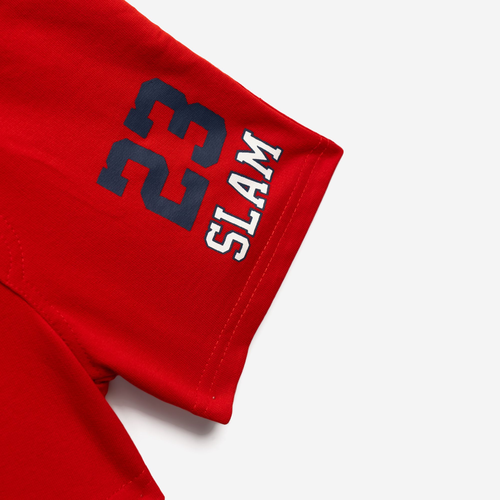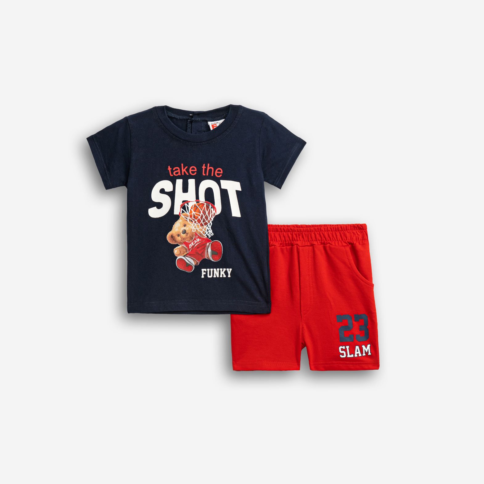Σετ μπλούζα με τύπωμα (shot) και βερμούδα φούτερ με τύπωμα σε χρώμα μπλέ/κόκκινο για αγόρι μηνών