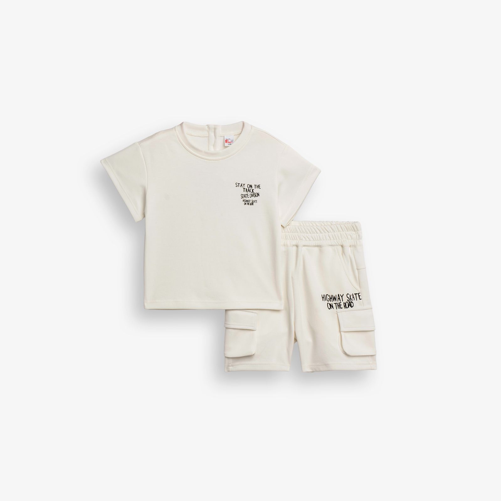 Σετ μπλούζα με τύπωμα (superior route) και βερμούδα φούτερ με τύπωμα και τσέπες σε χρώμα εκρού/εκρού για αγόρι μηνών