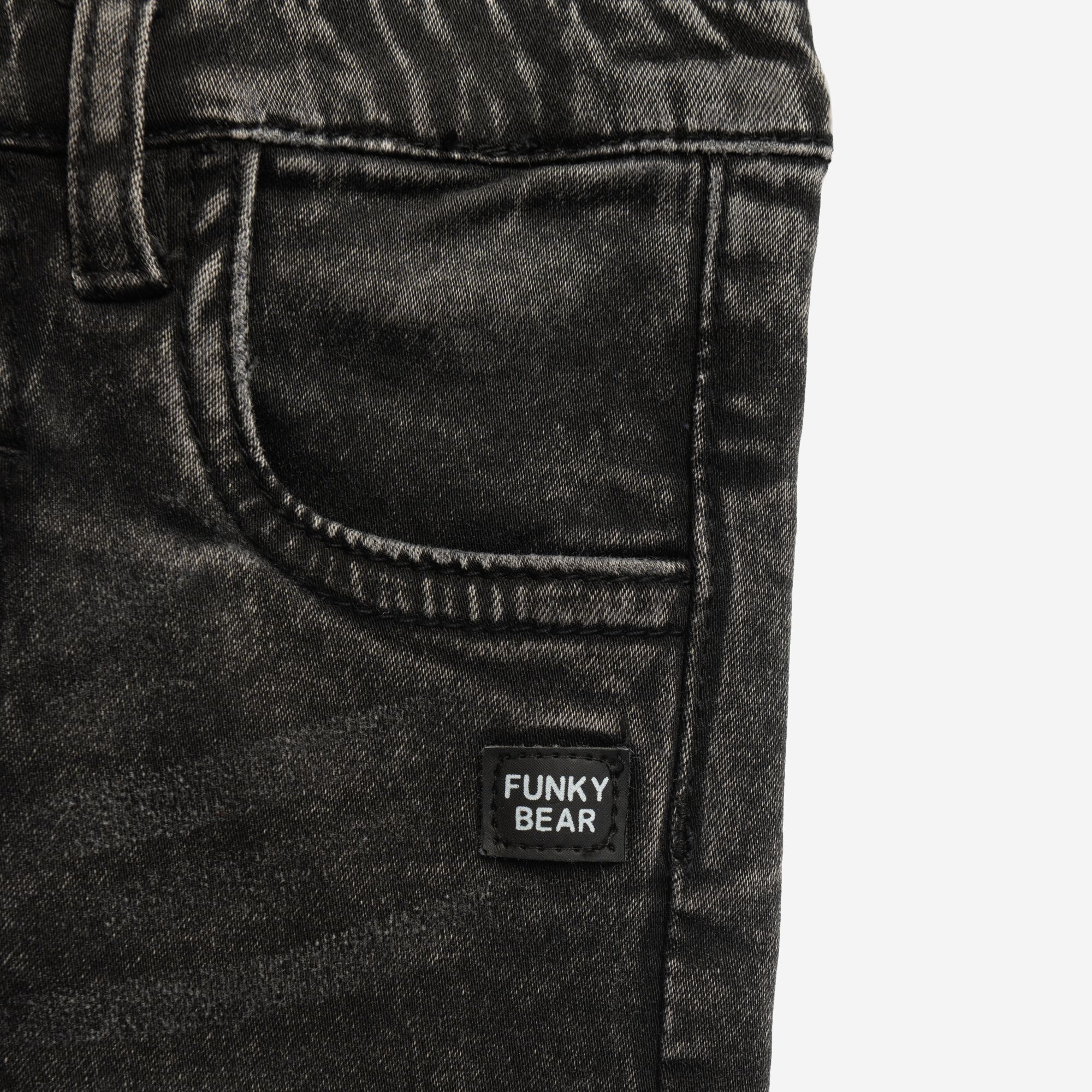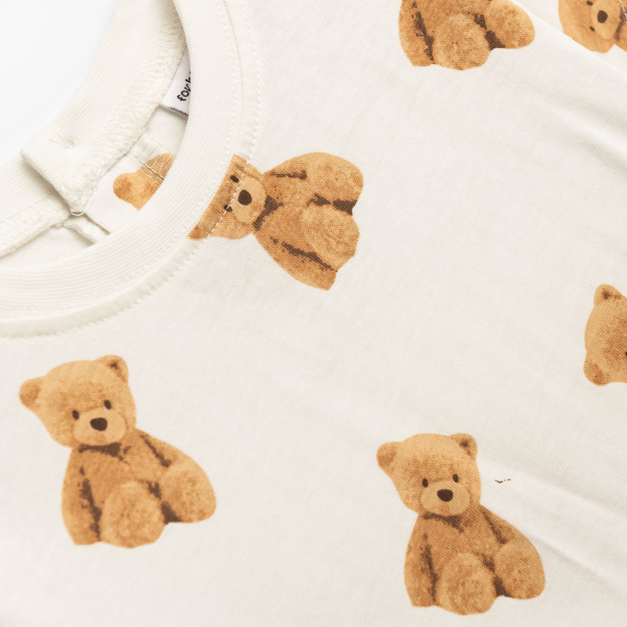 Σετ μπλούζα με τύπωμα (αρκουδάκια) allover και βερμούδα φούτερ τζίν σε χρώμα εκρού/μαύρο τζίν για αγόρι μηνών