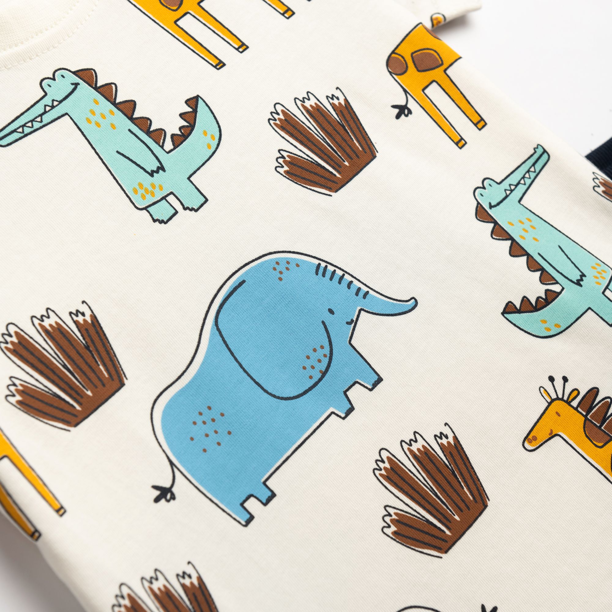 Σετ μπλούζα με τύπωμα (ζωάκια) allover και βερμούδα φούτερ τζίν σε χρώμα εκρού/μπλέ τζίν για αγόρι μηνών