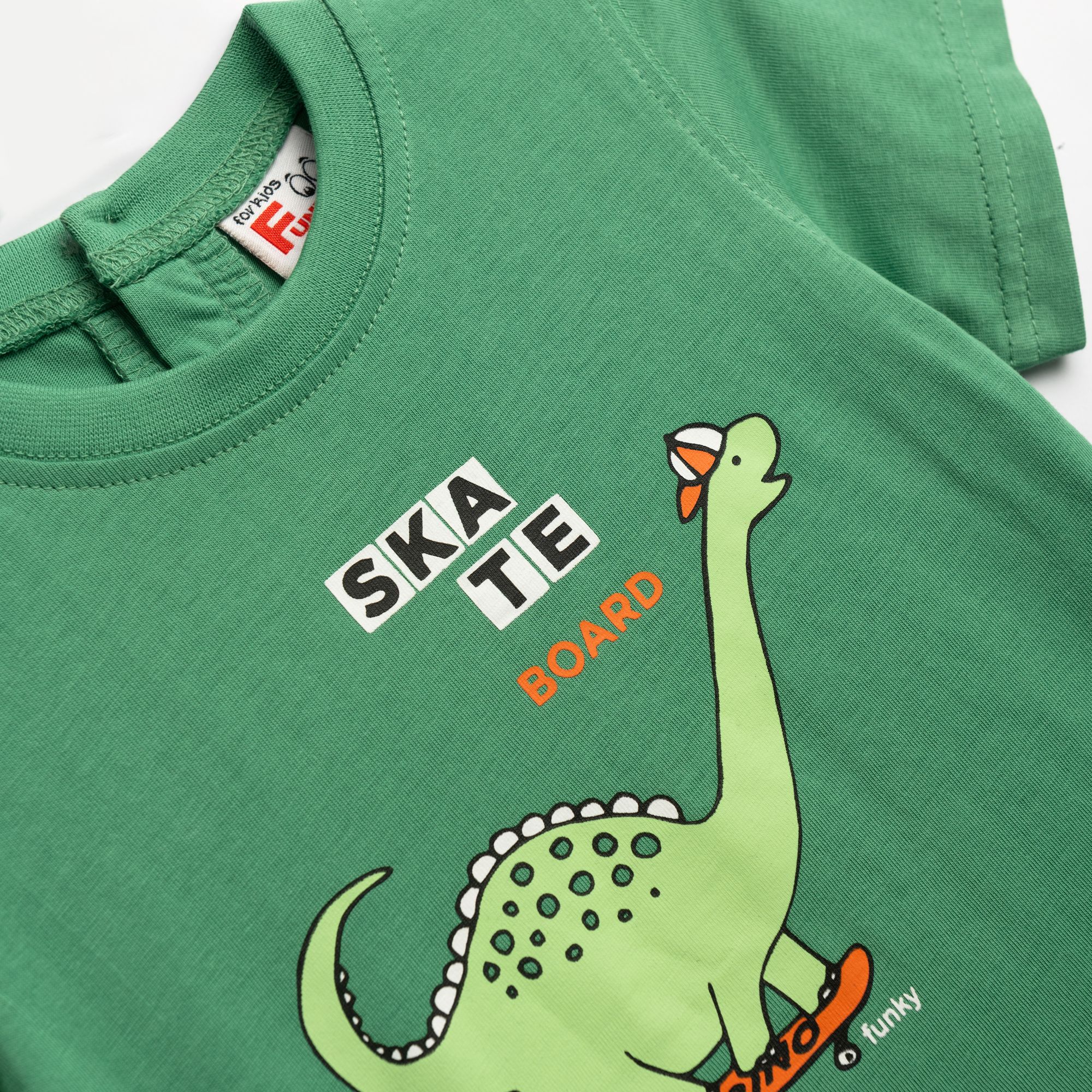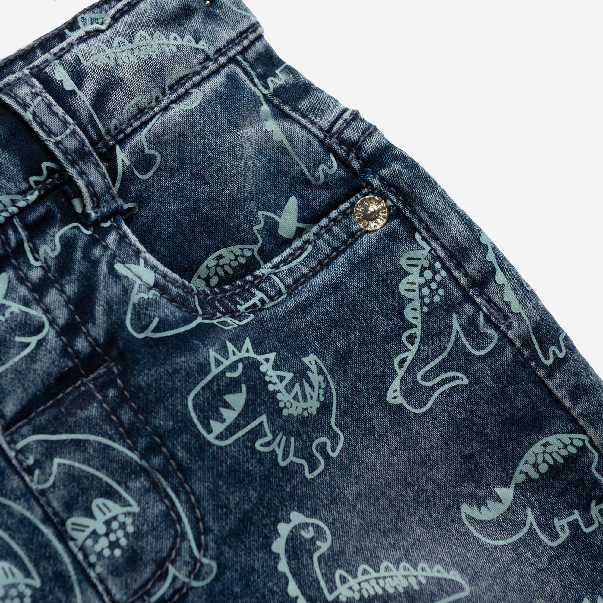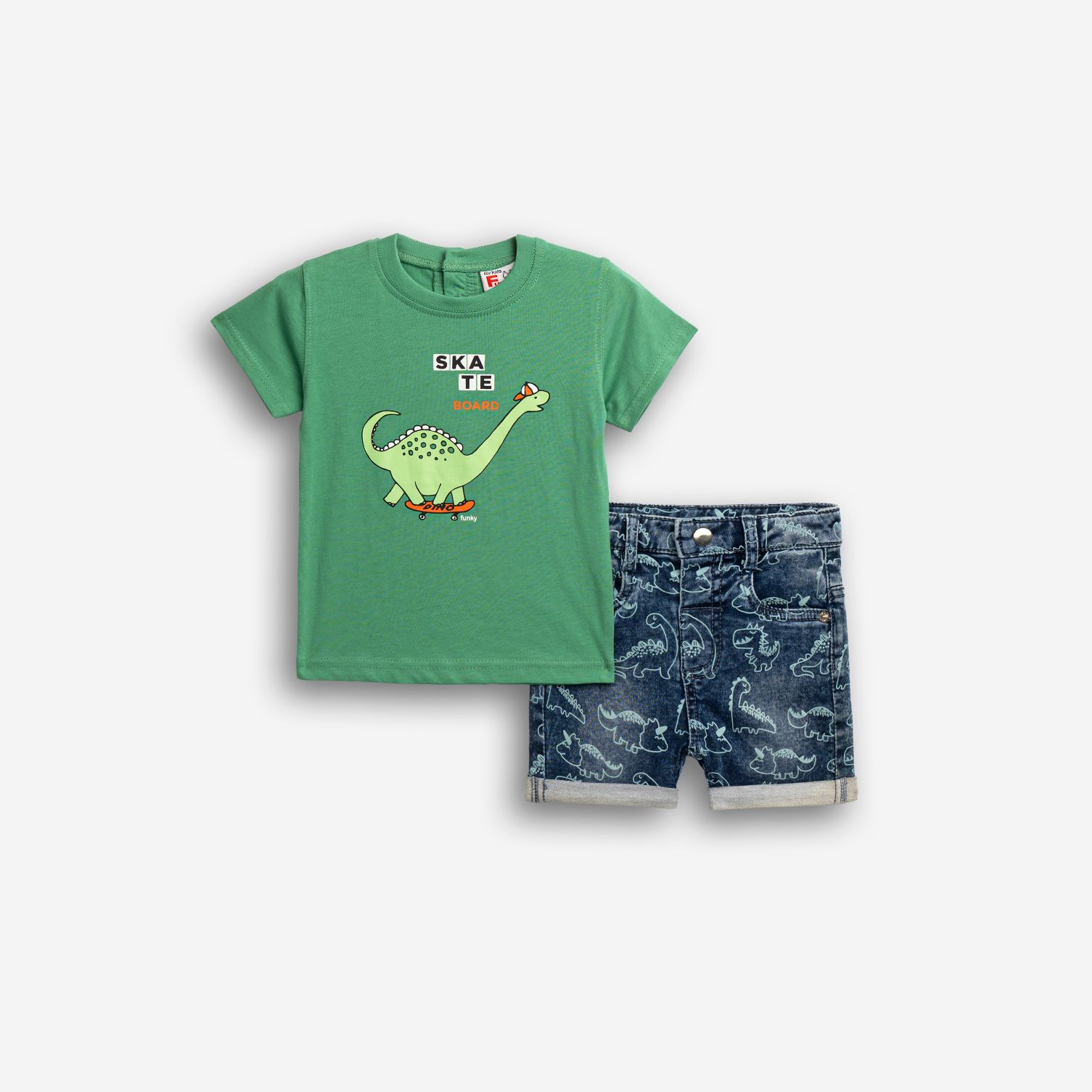 Σετ μπλούζα με τύπωμα (δεινόσαυρος) και βερμούδα φούτερ τζίν με τύπωμα allover σε χρώμα leprechaun/μπλέ τζίν για αγόρι μηνών