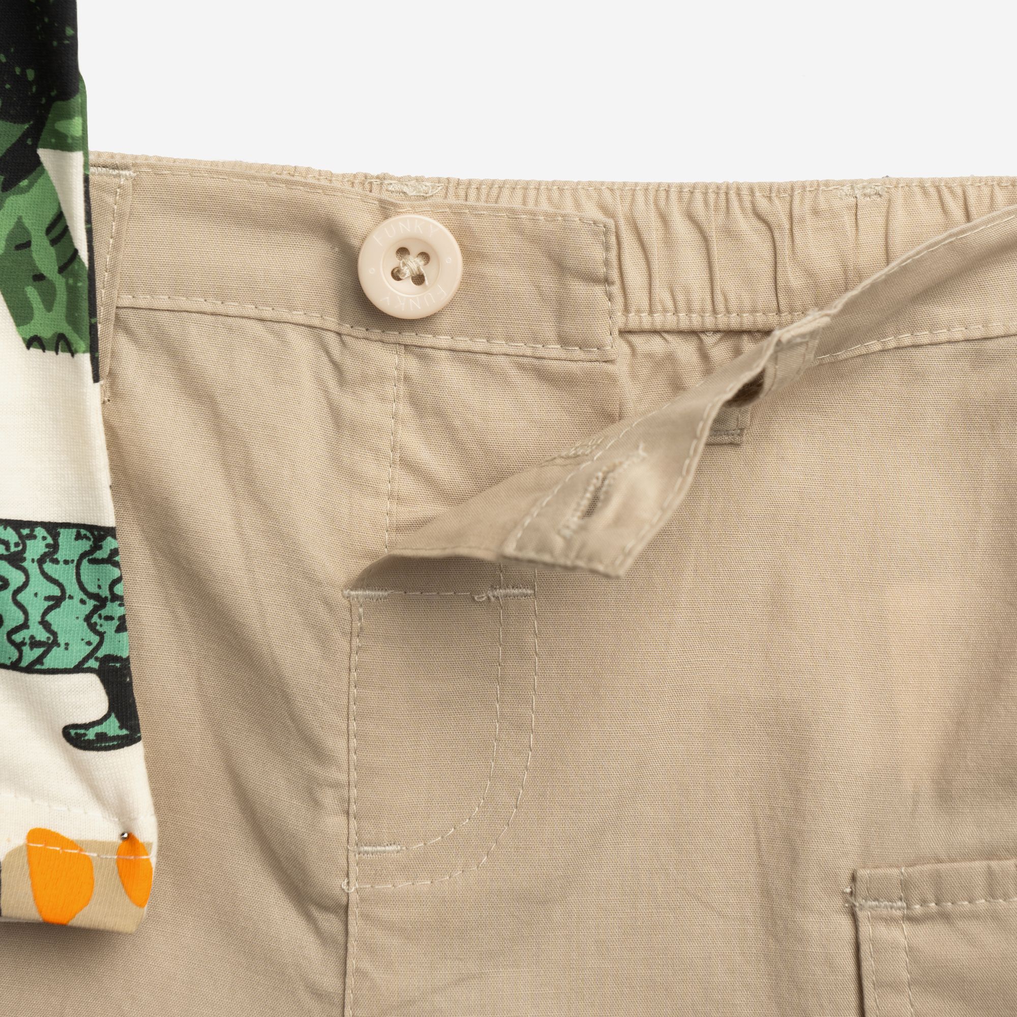 Σετ μπλούζα με τύπωμα (ζωάκια) allover και βερμούδα σταθερή με τσέπες σε χρώμα εκρού/μπέζ άμμου για αγόρι μηνών