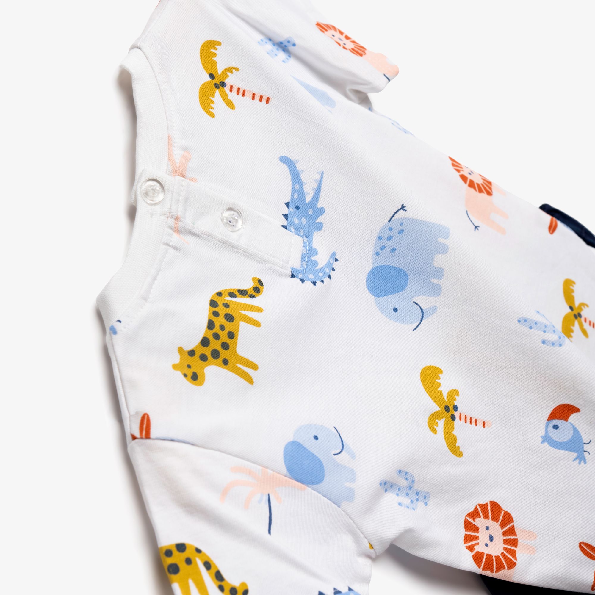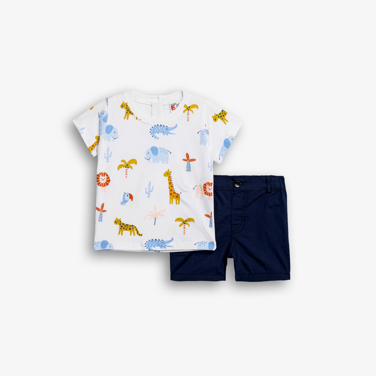Σετ μπλούζα με τύπωμα (ζωάκια) allover και βερμούδα σταθερή με τσέπη και τύπωμα σε χρώμα λευκό/ραφ για αγόρι μηνών
