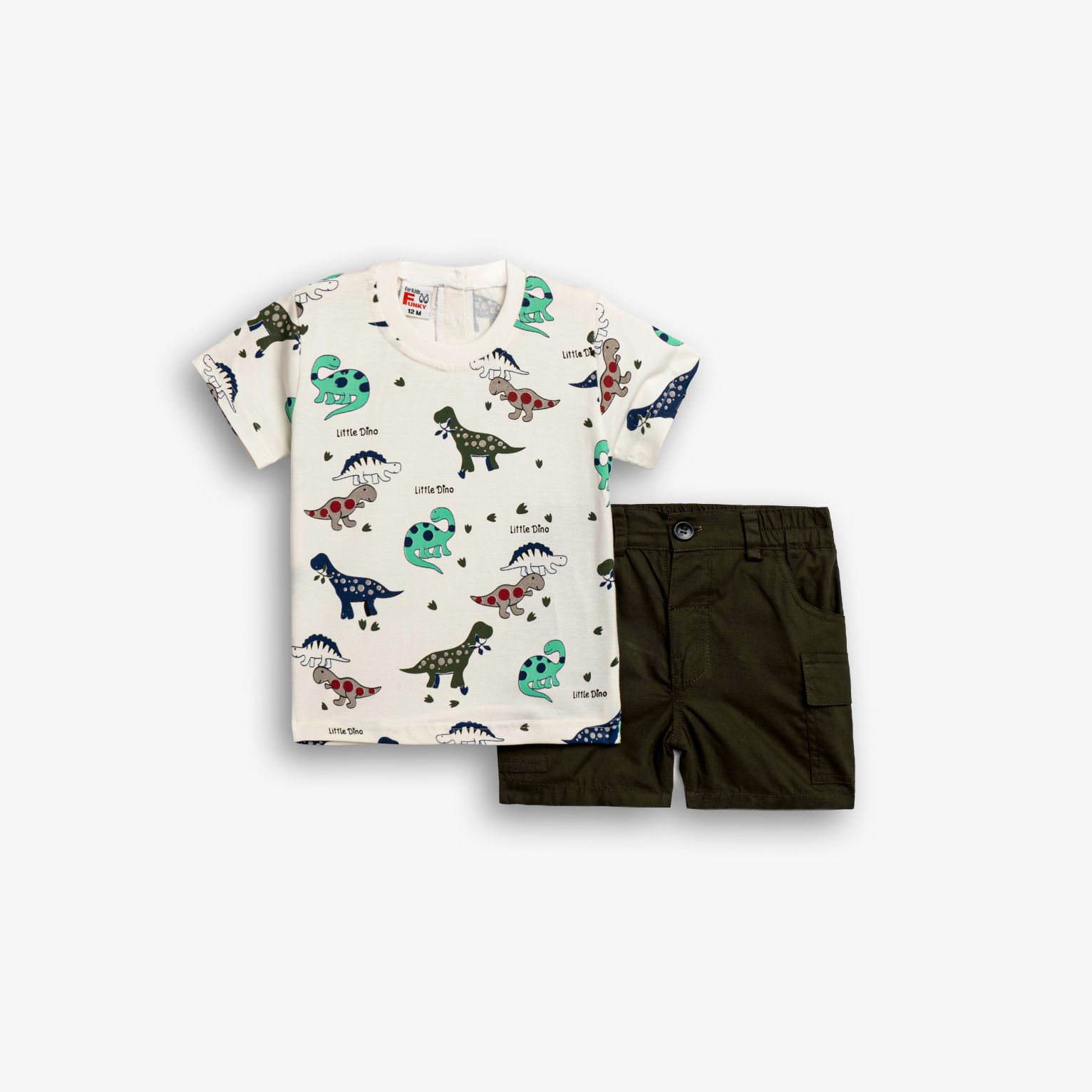 Σετ μπλούζα με τύπωμα (δεινόσαυροι) allover και βερμούδα σταθερή με τσέπες σε χρώμα εκρού/χακί για αγόρι μηνών
