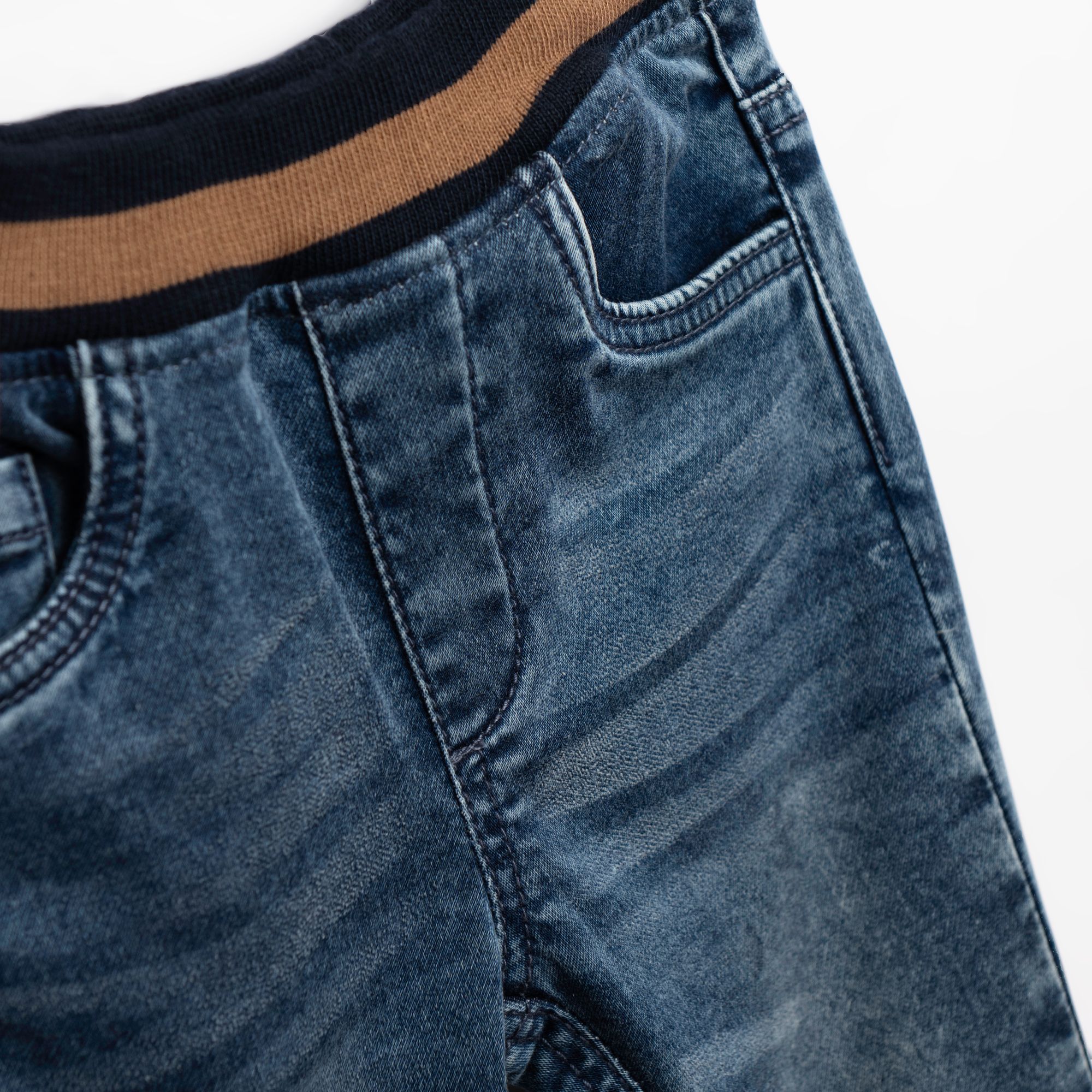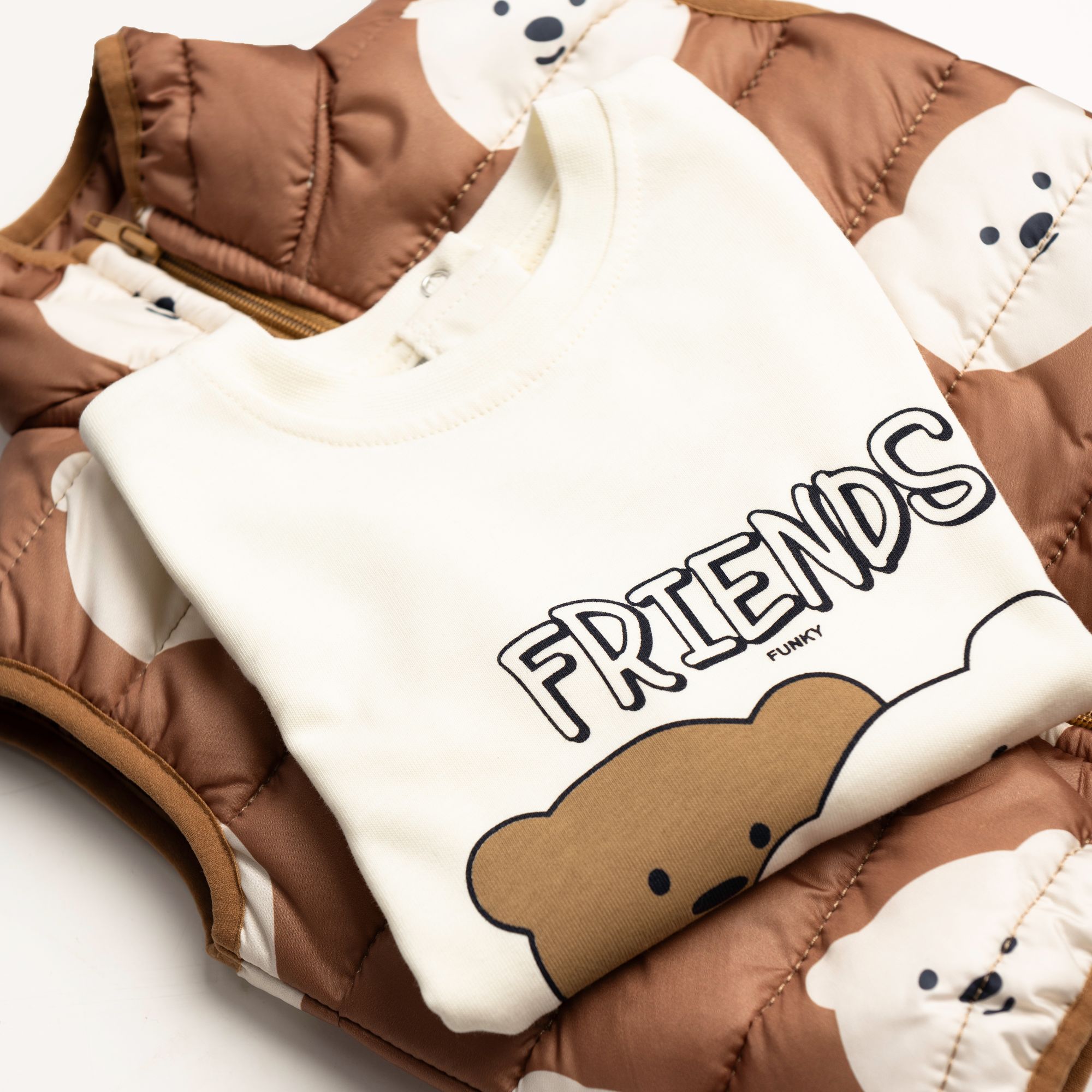 Σετ 3 τεμάχια τζάκετ αμάνικο με τύπωμα allover και μπλούζα μακρυμάνικη κάλτσα με τύπωμα (αρκουδάκια) και παντελόνι τζίν λύκρα μόκα/βανίλια/τζιν για αγόρι μηνών