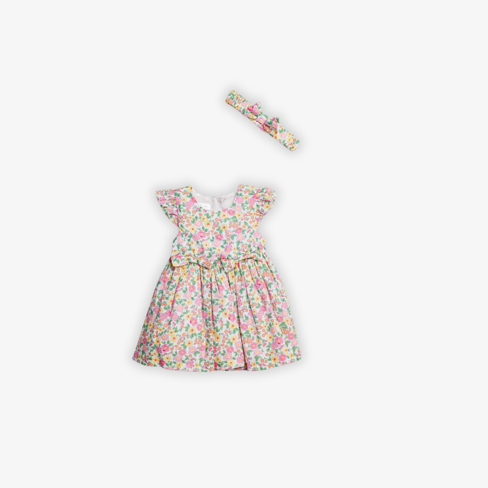Φόρεμα και κορδέλα με τύπωμα (λουλούδια) allover σε χρώμα τύπος για κορίτσι μηνών