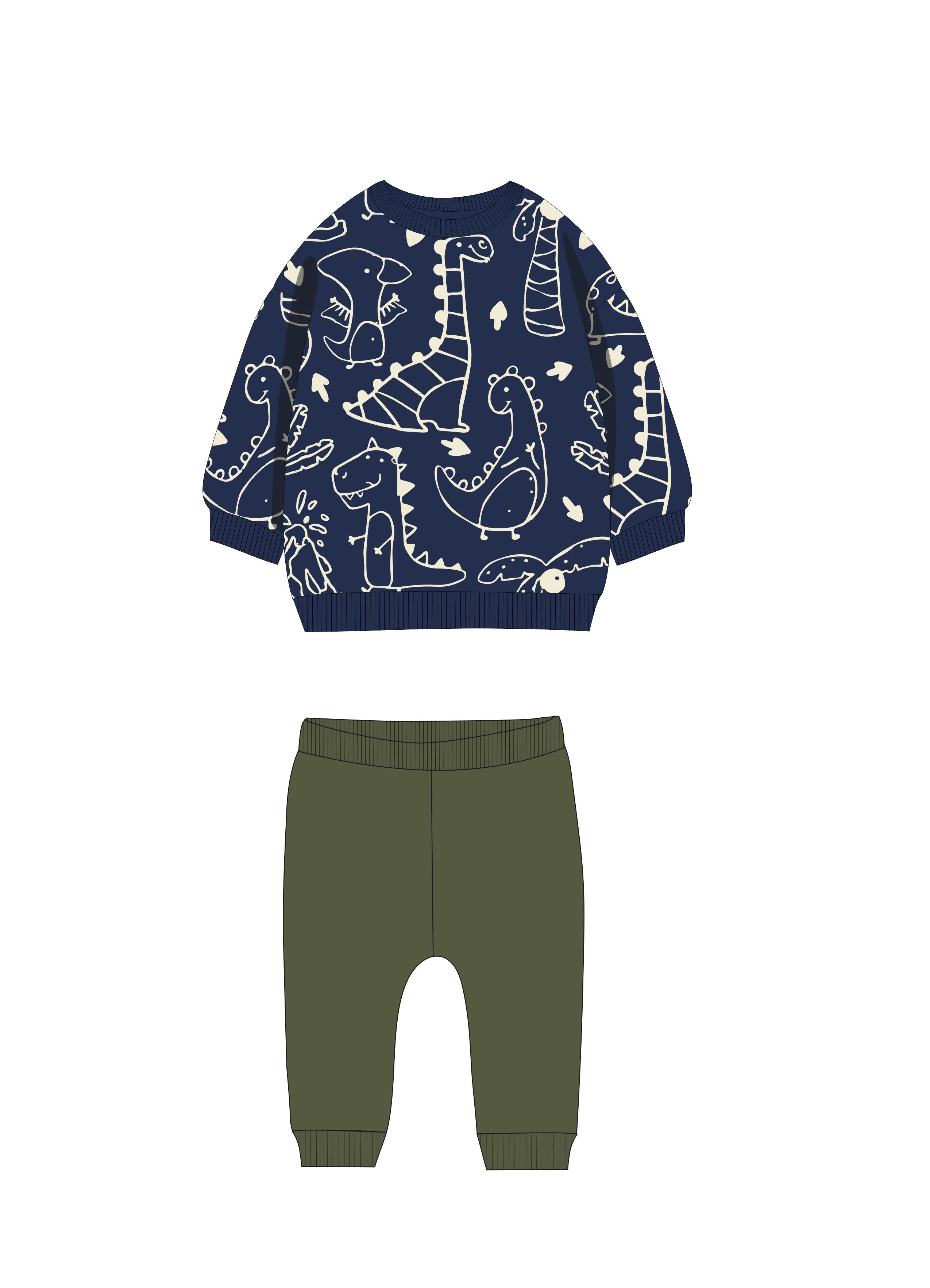 Σετ μπλούζα και παντελόνι με τύπωμα για αγόρι 6-24 μηνών σε χρώμα μπλε allover/χακί
