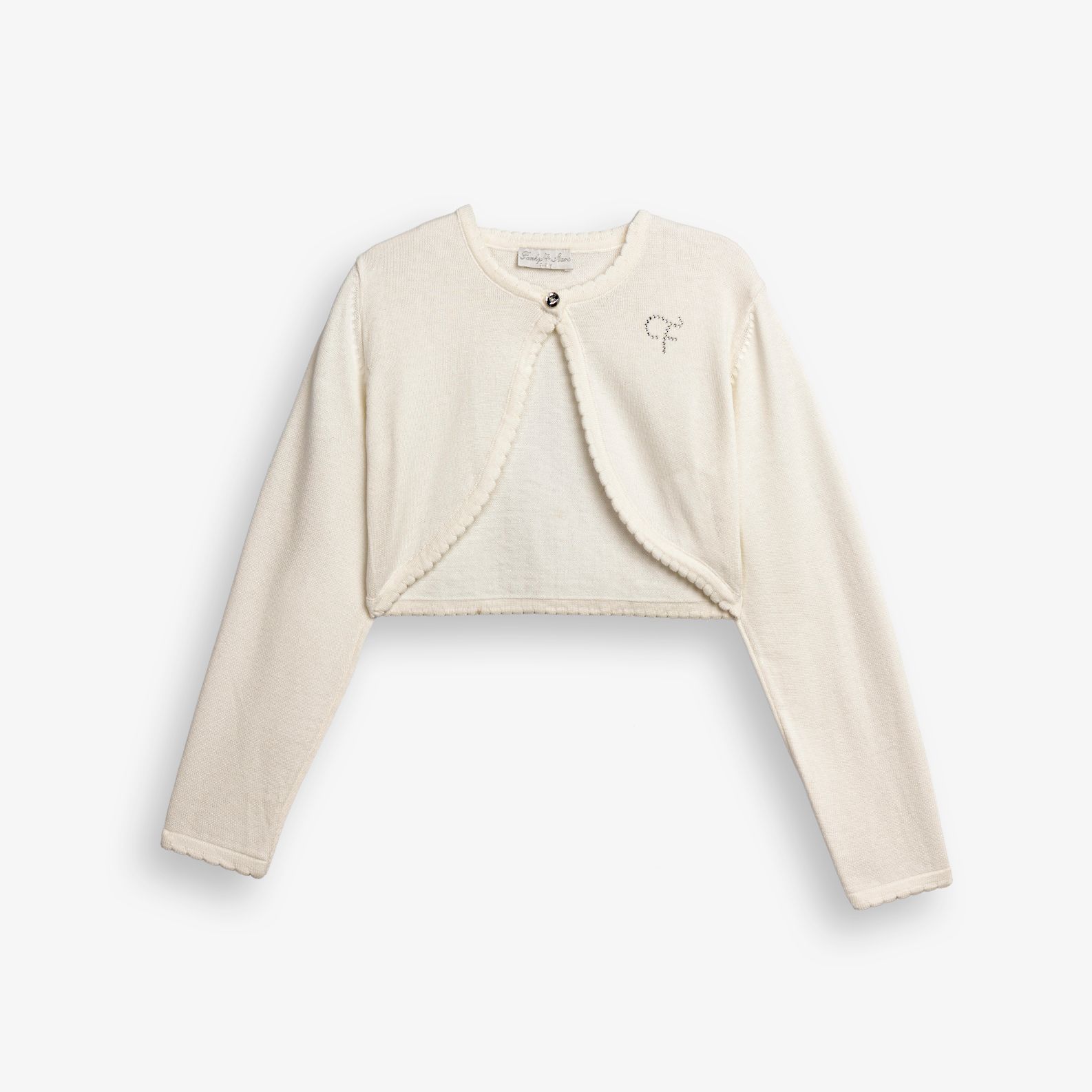 Jacket long-sleeved knitted in color ecru for girls 6-16 years