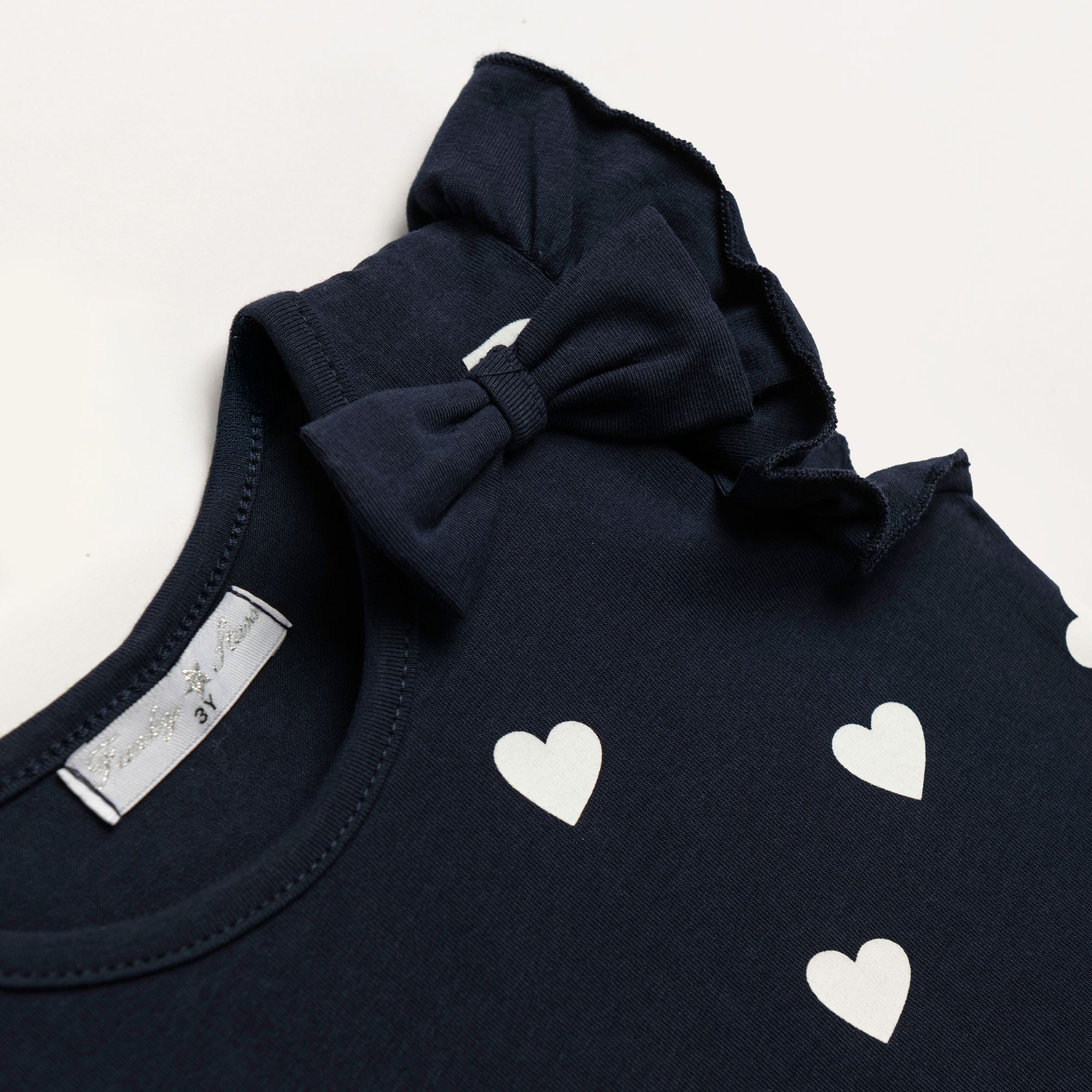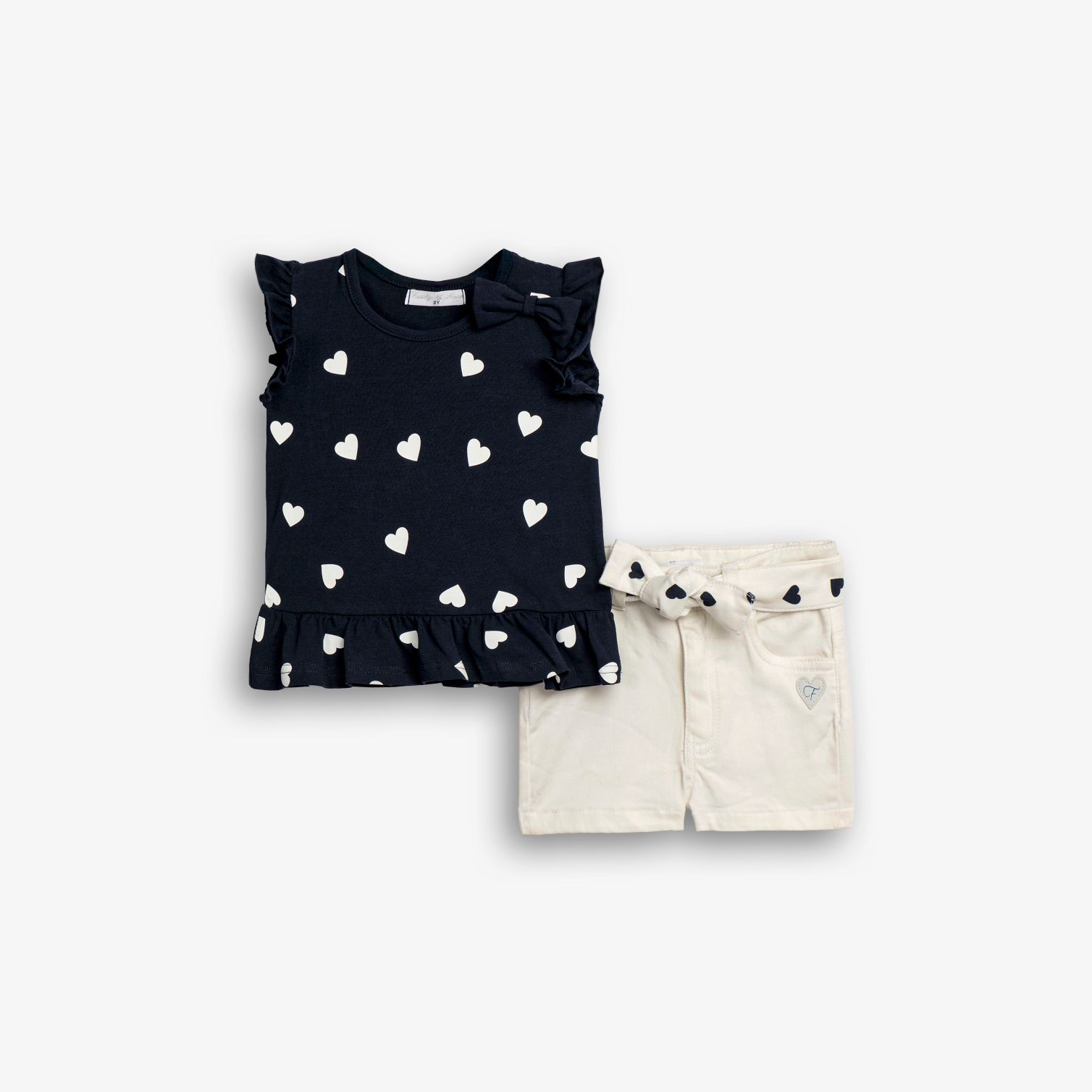 Set blouse jersey lycra with printing (hearts) allover and shorts jean lycra with belt in color blue/white for girls 1-6 years